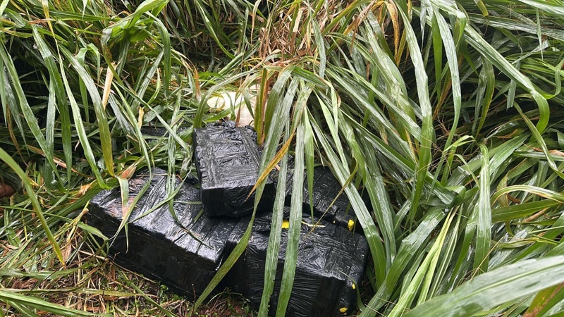 Ao adentrar a mata, os agentes seguiram os rastros e localizaram volumes de substância análoga à maconha, além de uma sacola com agrotóxico de origem paraguaia.