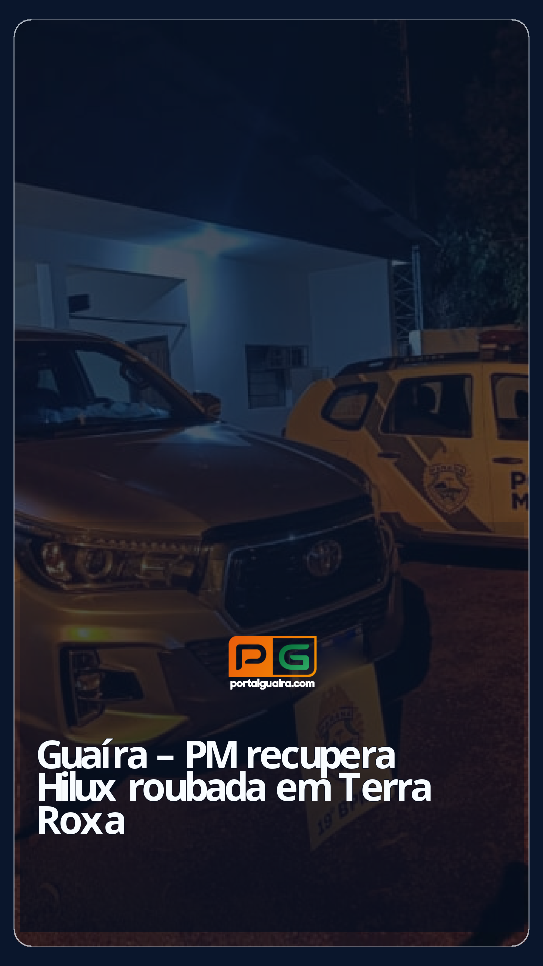 Na madrugada de ontem (5), por volta de 01h40, a equipe policial foi informada de que uma caminhonete Toyota/Hilux, havia sido roubada na cidade de Terra Roxa/PR por volta das 01h30. Durante as diligências realizadas em Guaíra, a PM recebeu atualizações indicando que o veículo roubado estava em direção ao Paraguai. No trajeto, os suspeitos se depararam com uma guarnição policial do Estado de Mato Grosso do Sul (MS), e após o encontro, realizaram manobra evasiva, retornando em fuga em direção à cidade de Guaíra.