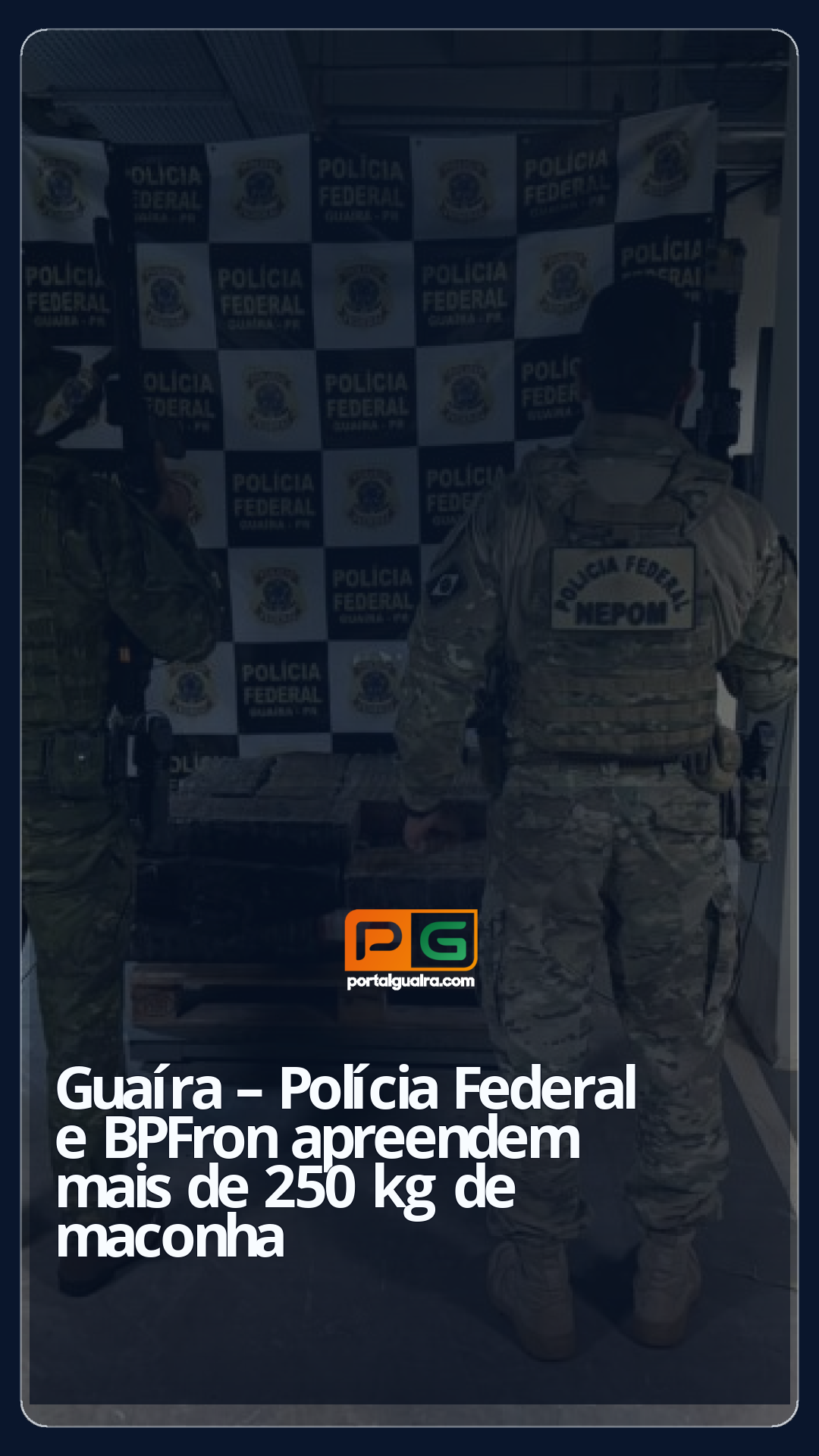Uma ação integrada entre o NEPOM da Polícia Federal e o Batalhão de Polícia de Fronteira (BPFRON) da Polícia Militar do Paraná resultou na apreensão de 254,5 quilos de maconha na madrugada desta quarta-feira (25), na zona rural de Guaíra.