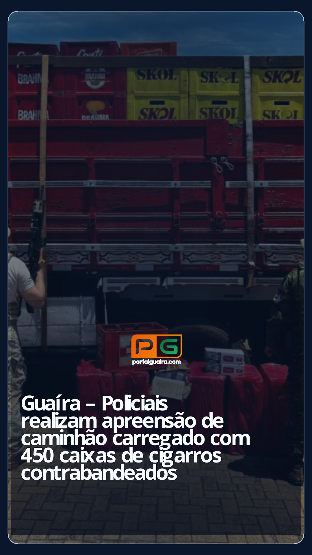 No veículo foram encontradas aproximadamente 450 caixas de cigarros contrabandeadas do Paraguai escondidas embaixo de engradados de cerveja, totalizando um prejuízo de aproximadamente R$ 1.250.000,00 ao crime organizado.