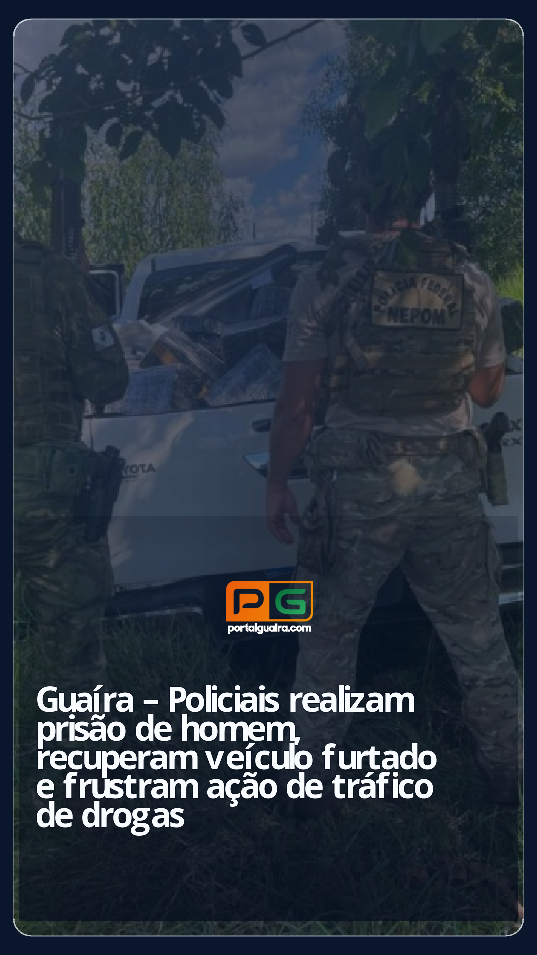 Na tarde de segunda-feira (05), durante a Operação Protetor, Policiais Federais do NEPOM/PF, PRF de Dourados/MS e Policiais Militares do BPFRON/PMPR realizavam patrulhamento no região de Guaíra quando veículo em alta velocidade cruzando a Ponte Ayrton Senna.
