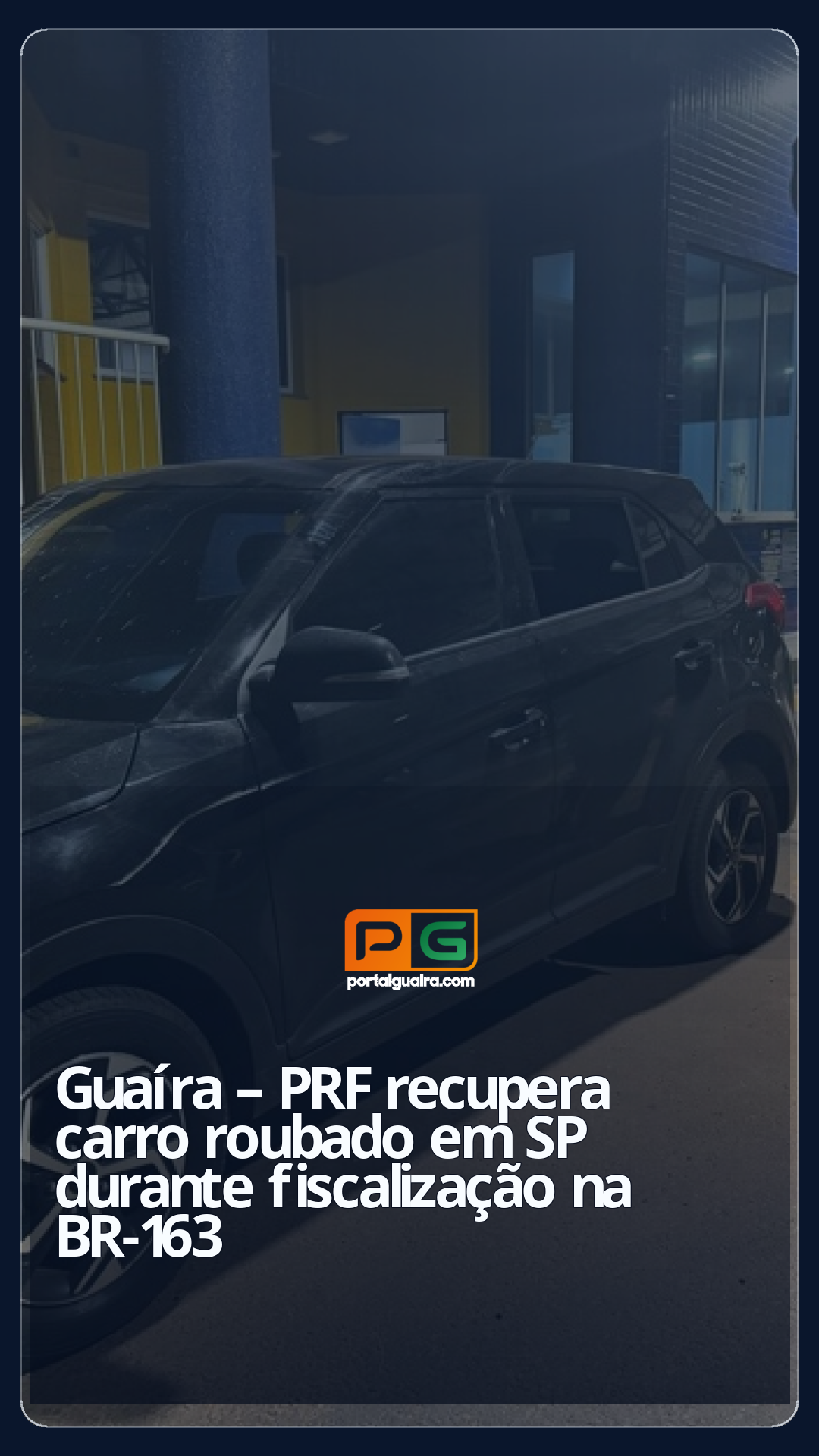 A Polícia Rodoviária Federal (PRF) recuperou na noite de segunda-feira (28), aqui em Guaíra, um veículo Hyundai/Creta com registro de roubo no estado de São Paulo.