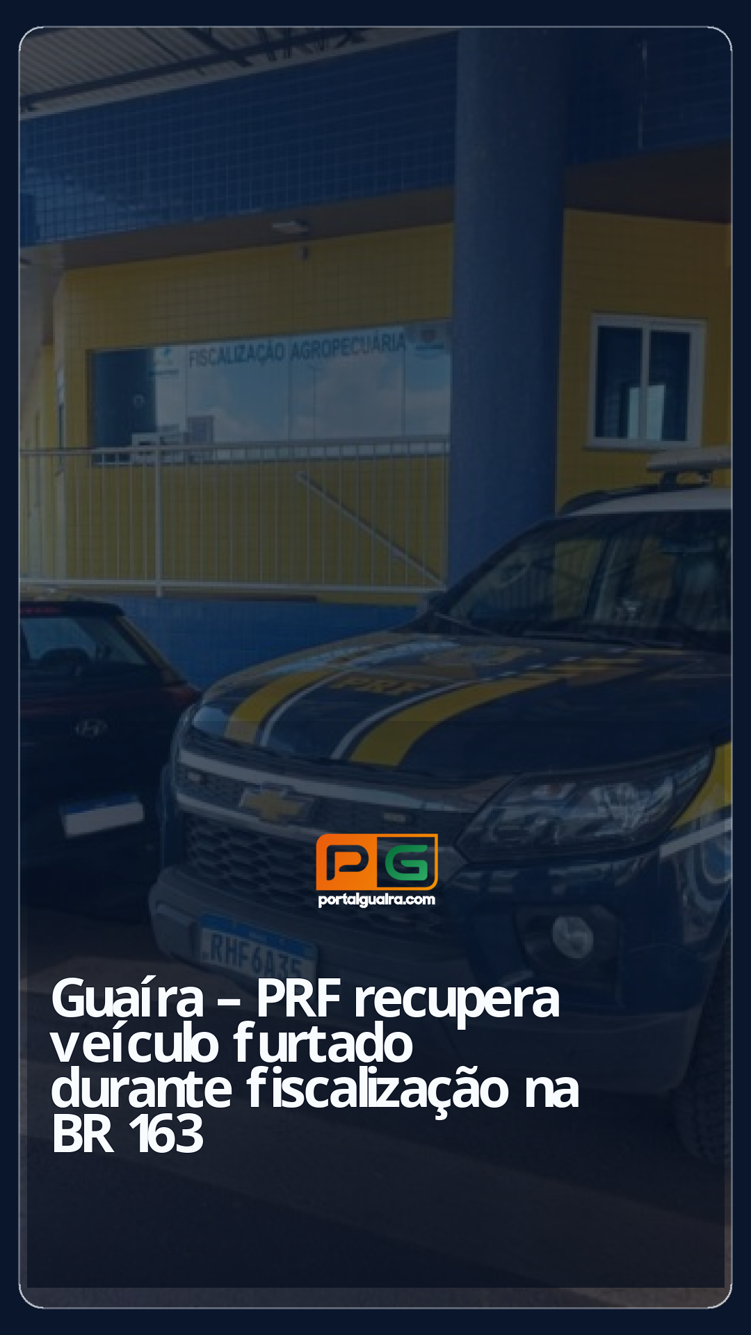 A Polícia Rodoviária Federal (PRF) recuperou, na manhã de sexta-feira (30), um veículo com registro de furto durante fiscalização no km 350 da BR-163, em frente à Unidade Operacional da PRF em Guaíra.
