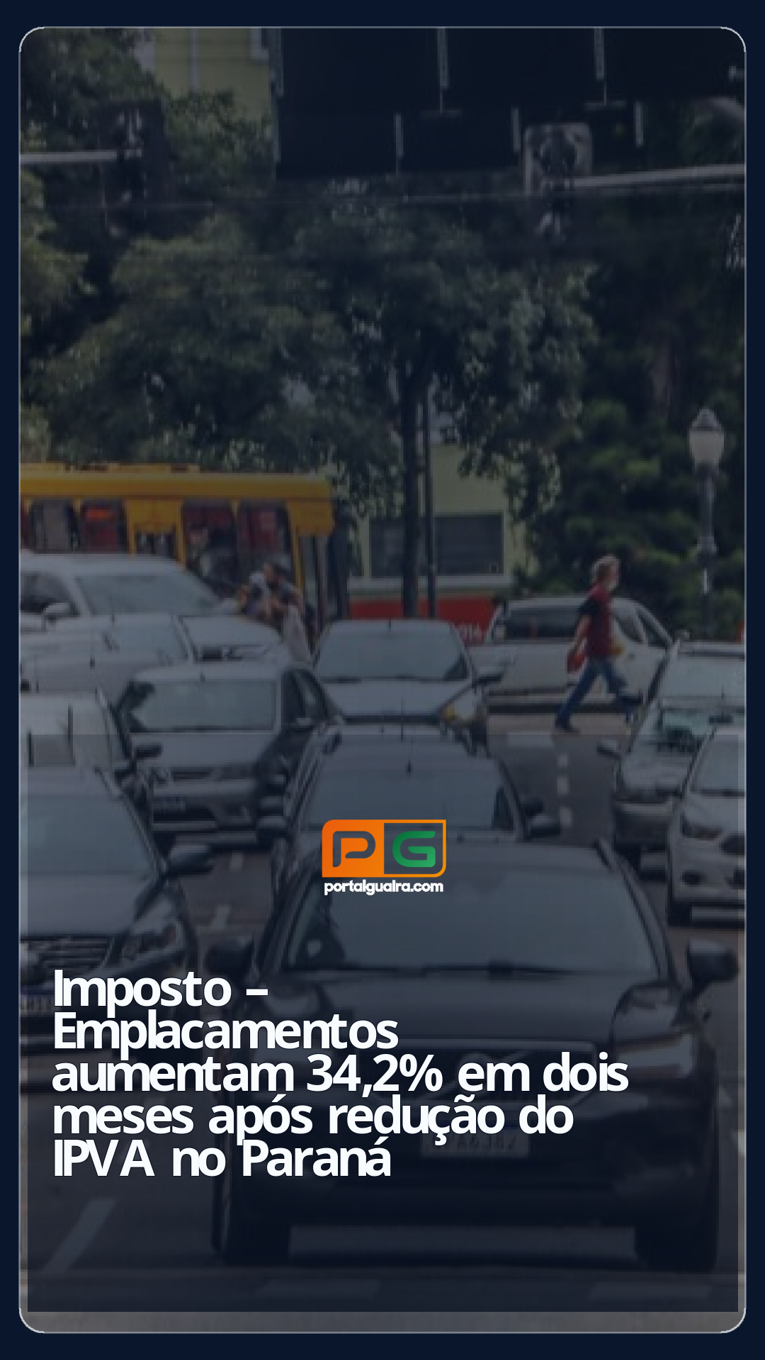 O número de veículos emplacados no Paraná cresceu 34,2% nos dois meses seguintes ao anúncio da redução da alíquota do IPVA, em comparação com o mesmo período de 2024. Desde 20 de agosto, mais de 77 mil novos veículos foram registrados no Estado, quase 20 mil a mais que no mesmo intervalo do ano anterior, segundo dados do Departamento de Trânsito do Paraná (Detran-PR).