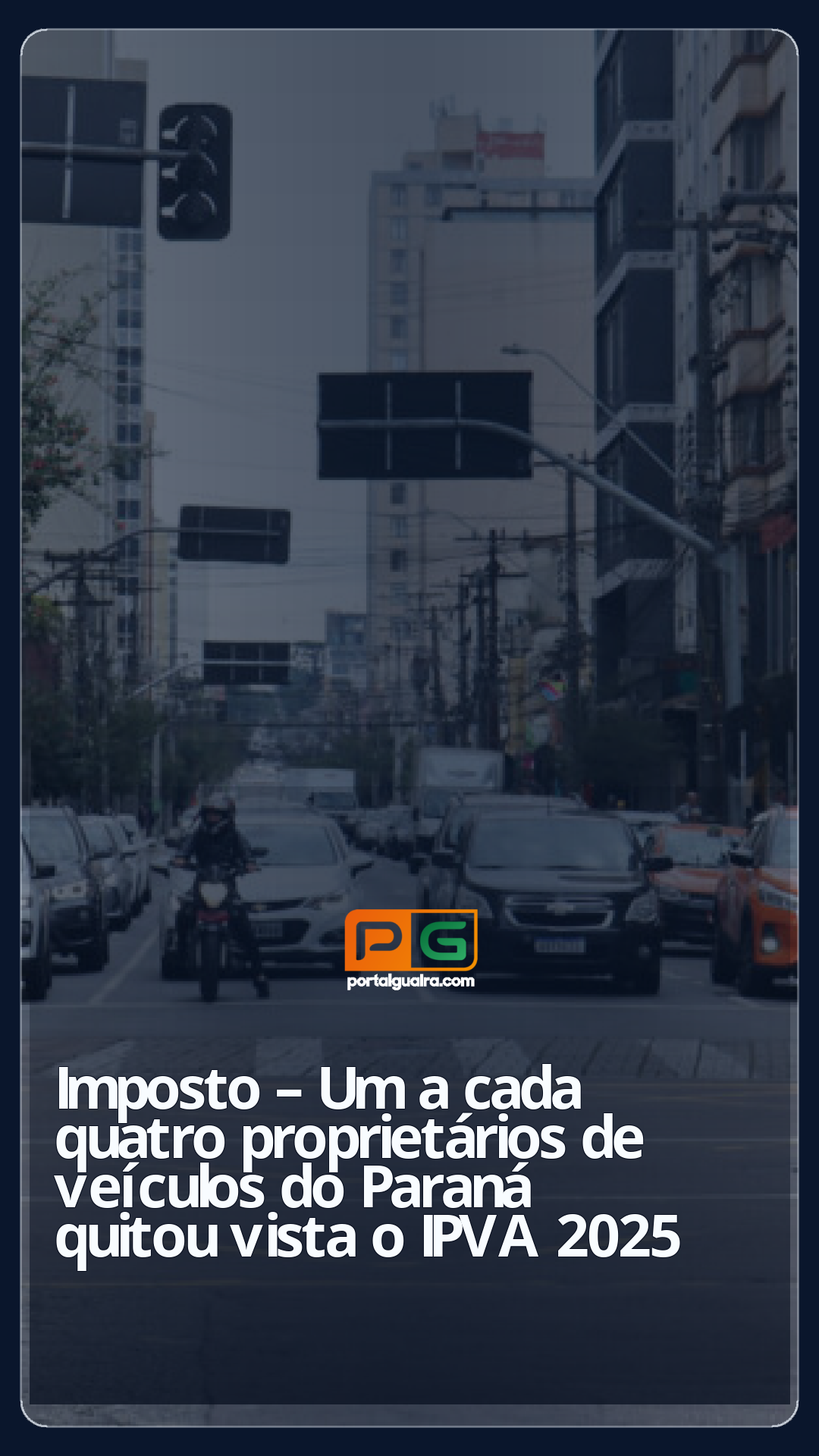 Pouco mais de um quarto dos proprietários de veículos paranaenses aproveitou o desconto de 6% do Imposto sobre Propriedade de Veículos Automotores (IPVA) 2025, optando pelo pagamento à vista do tributo. Dos cerca de 4 milhões de veículos tributáveis em todo o Estado, 1.108.499 não vão mais precisar se preocupar com isso ao longo dos próximos meses. Ou seja, pelo menos um a cada quatro proprietários de veículo no Estado já quitou à vista o imposto.