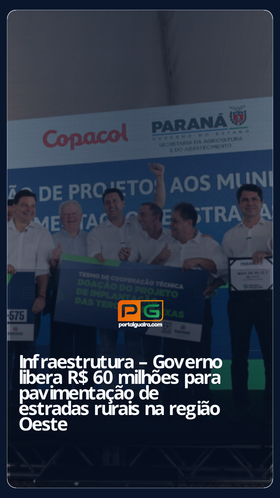 A previsão é que as obras de pavimentação sejam feitas em até 1.000 quilômetros de estradas rurais. “Eu tenho certeza que vai fortalecer cada vez mais o nosso Oeste, que é o nosso supermercado do mundo. Pois se o Oeste vai bem, o Paraná vai bem, por isso que nós temos que cuidar com muito carinho e cada vez mais fortalecer essa região”, destacou o governador.