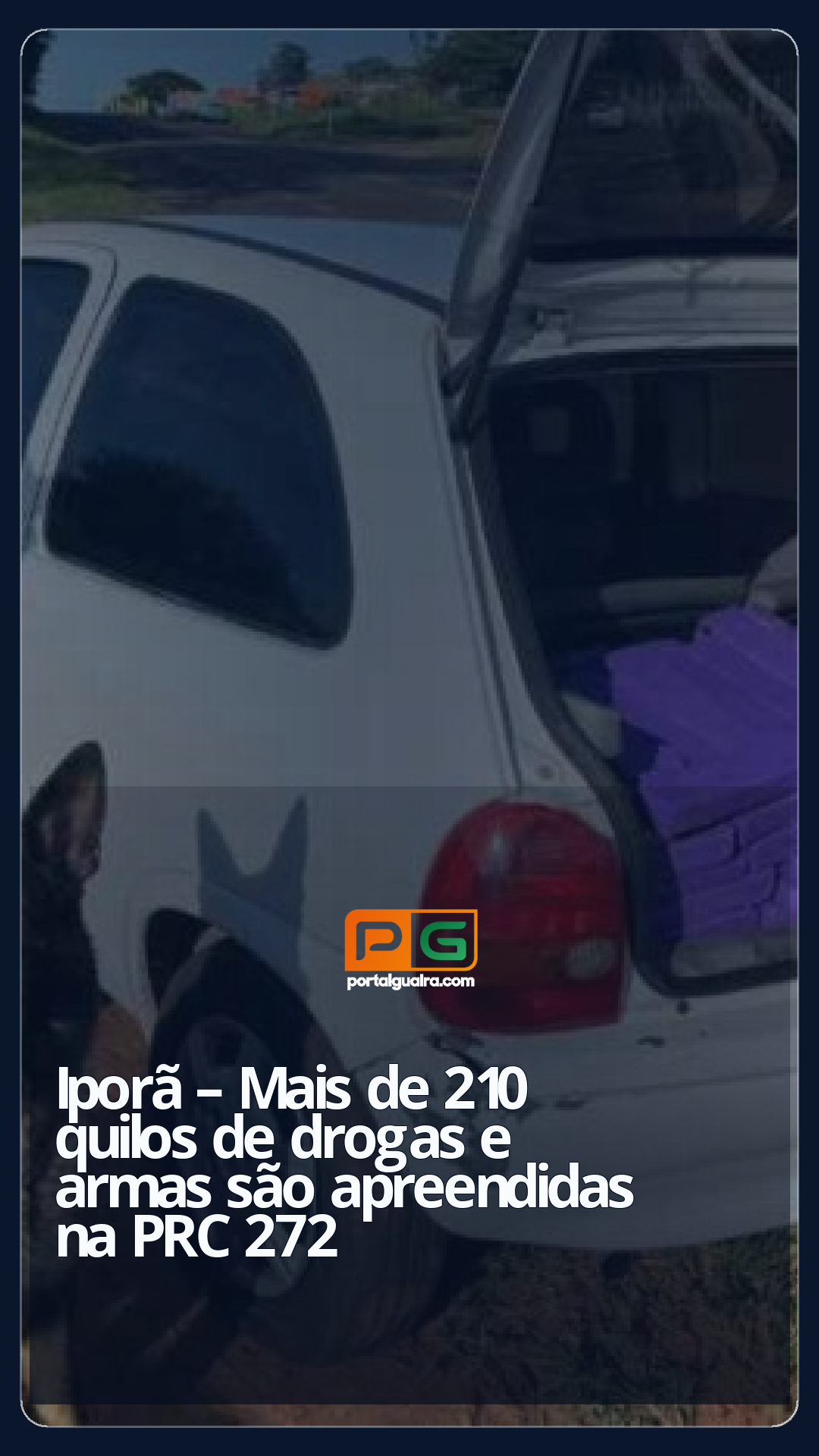 O veículo, as drogas, as armas e as munições foram encaminhados à Delegacia da Polícia Civil de Iporã.