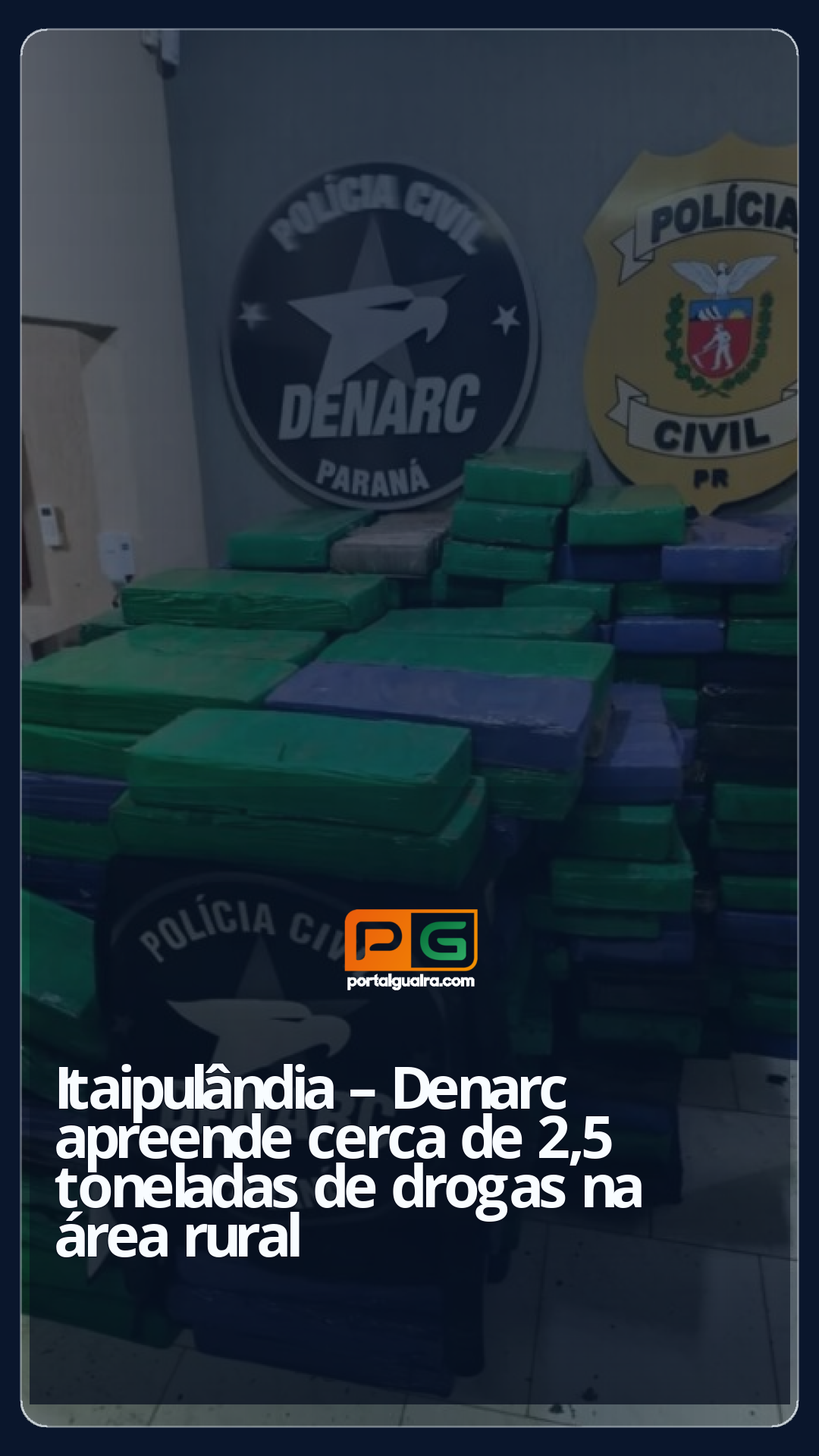 A Polícia Civil do Paraná (PCPR), por meio da Divisão Estadual de Narcóticos (DENARC), núcleo de Foz do Iguaçu, realizou uma expressiva apreensão de entorpecentes no início da noite desta sexta-feira, em uma área rural do município de Itaipulândia, no oeste do Estado.