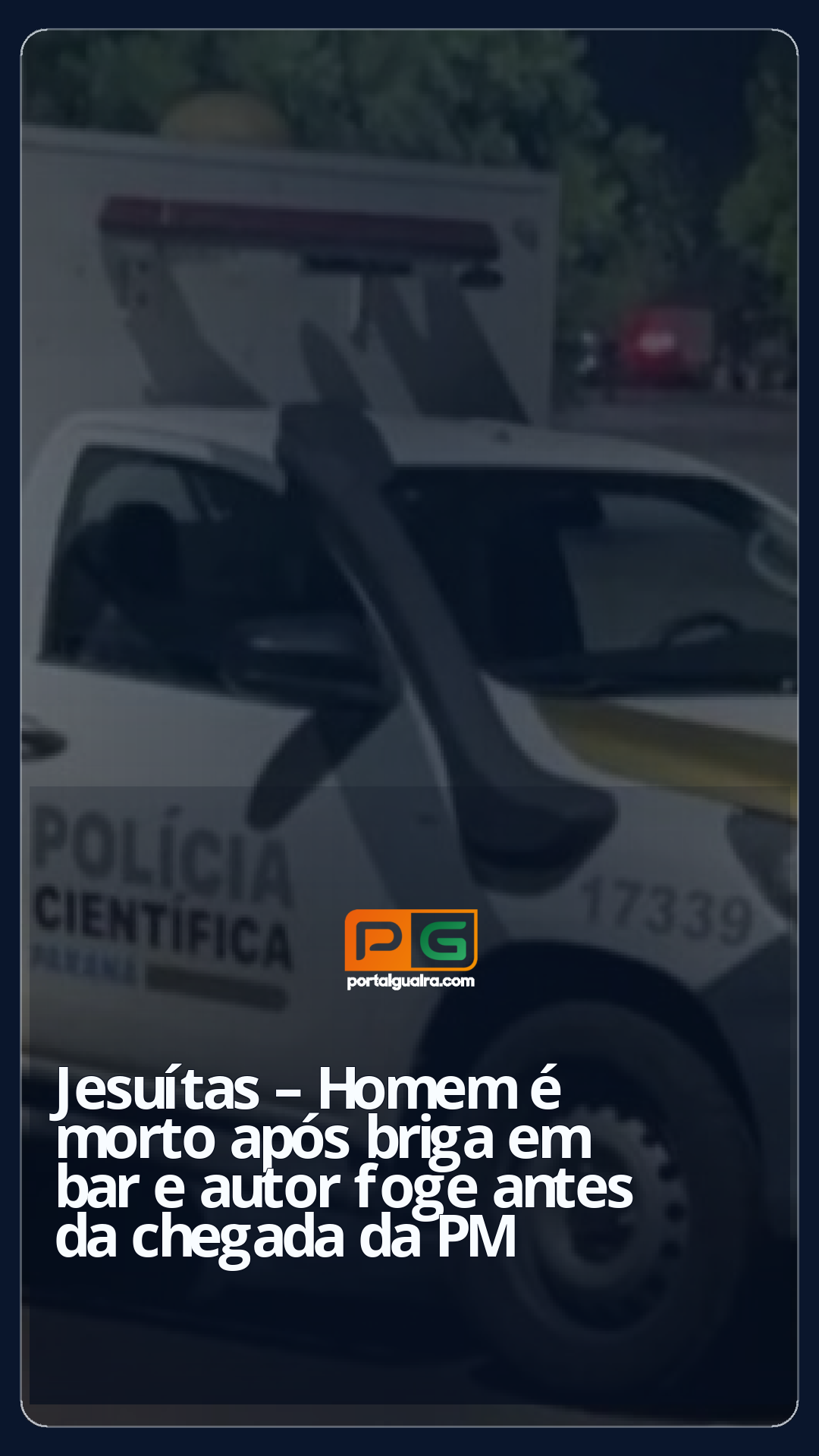 A Polícia Militar registrou um homicídio na noite de domingo (30) em Jesuítas. A ocorrência foi atendida por volta das 20h15 pela equipe da RPA da 1ª Companhia do 31º BPM.
