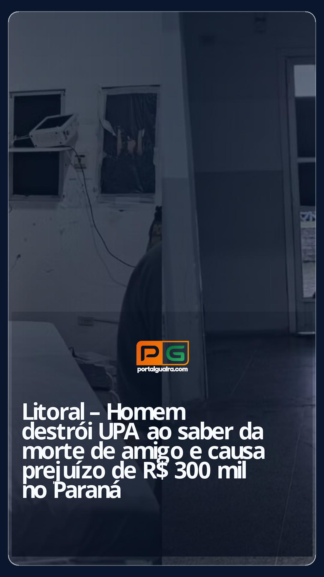 Um homem invadiu uma Unidade de Pronto Atendimento (UPA) e vandalizou o local após saber da morte de um amigo que havia sido baleado. O caso aconteceu na madrugada de sábado (18), em Praia de Leste, em Pontal do Paraná, no litoral, e causou um prejuízo de cerca de R$ 300 mil.