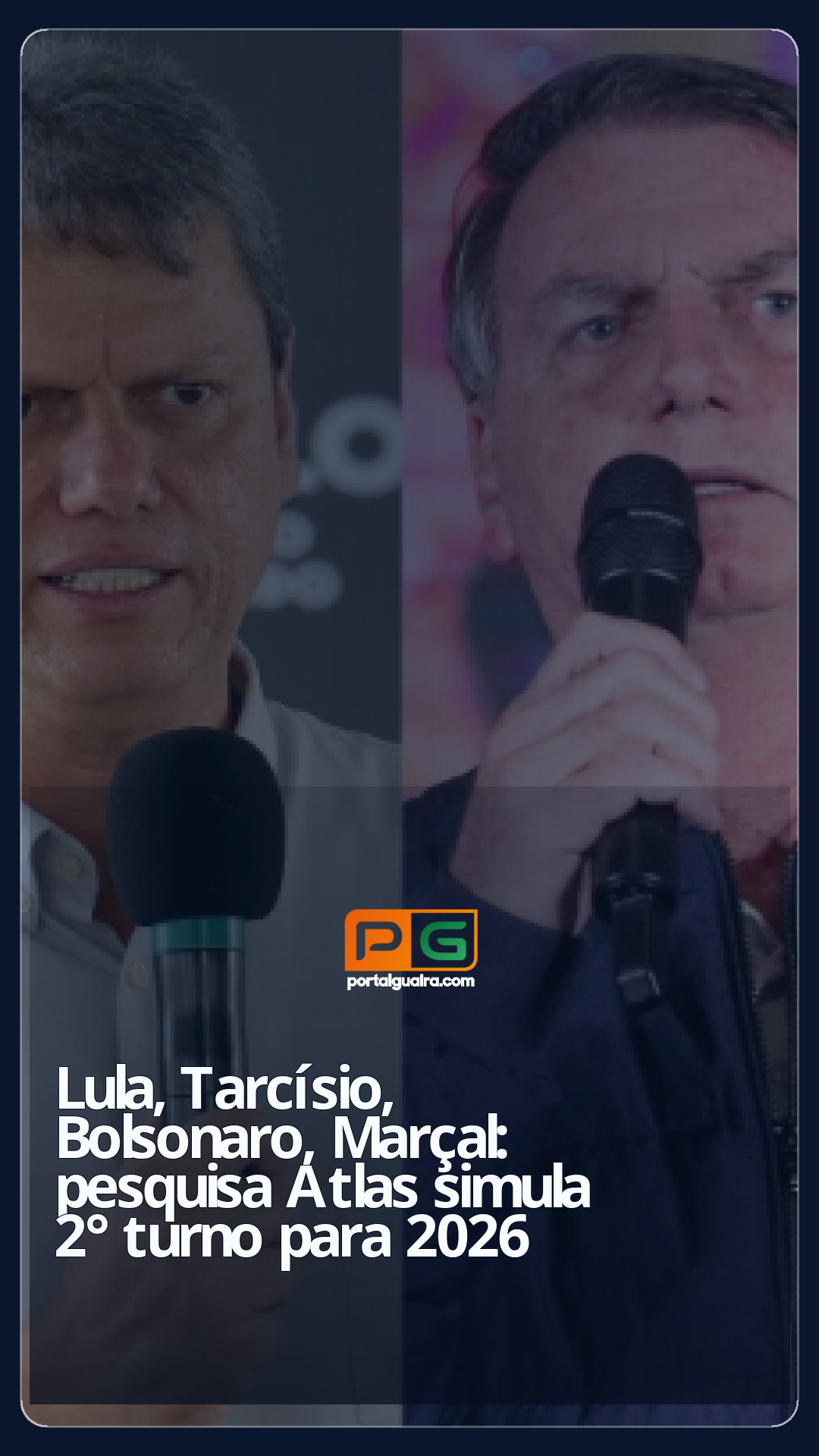 Em eventuais cenários de segundo turno em 2026, Lula (PT) ficaria em maior desvantagem se enfrentasse Pablo Marçal (PRTB) e também ficaria atrás de Jair Bolsonaro (PL) e Tarcísio de Freitas (Republicanos).
