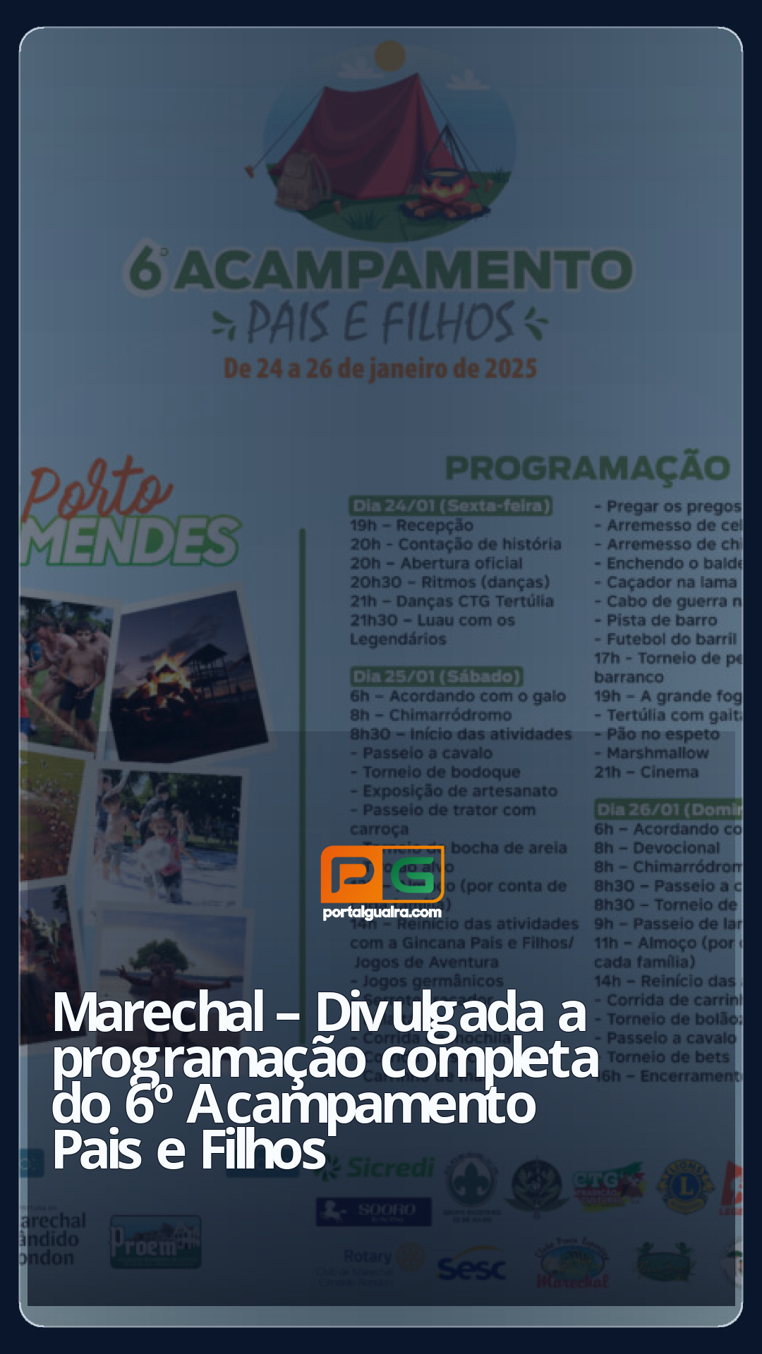 O parque de lazer e turismo de Porto Mendes, em Marechal Cândido Rondon, deverá receber, neste final de semana, centenas de famílias para o 6º Acampamento Pais e Filhos. O evento é organizado pela Prefeitura de Marechal Cândido Rondon com o apoio de diversas entidades.
