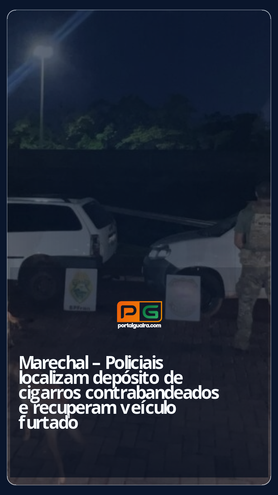 Nesta sexta-feira (07), a Polícia Federal em ação integrada com a Polícia Militar do Paraná, por meio do BPFron, realizou uma ação que resultou na apreensão de dois veículos, sendo um deles com registro de furto no Estado de São Paulo, e no estouro de um depósito de cigarros paraguaios no município de Marechal Cândido Rondon.