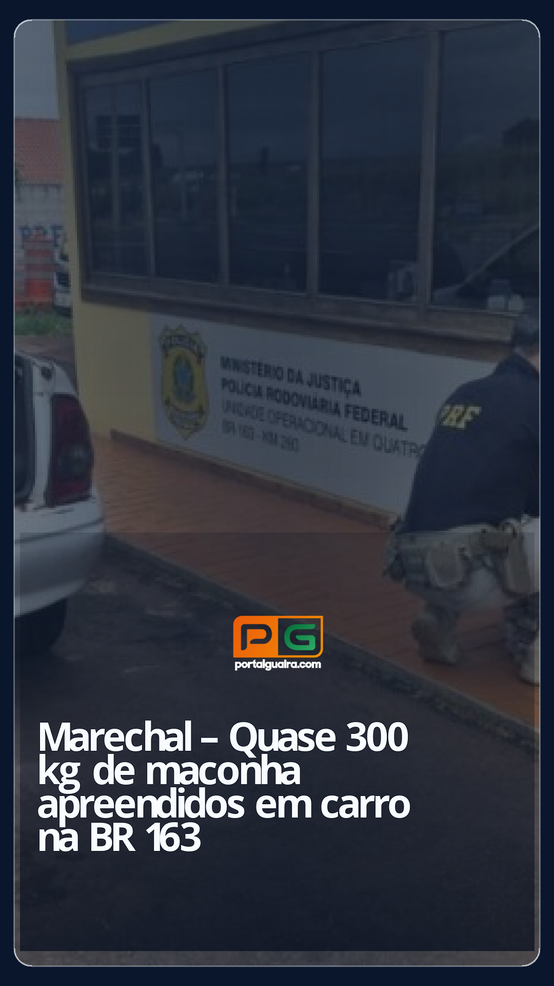 A Polícia Rodoviária Federal apreendeu quase 300 quilos de maconha na manhã de quinta-feira (22), na BR-163, em Marechal Cândido Rondon, após abordagem a um veículo com registro de furto.