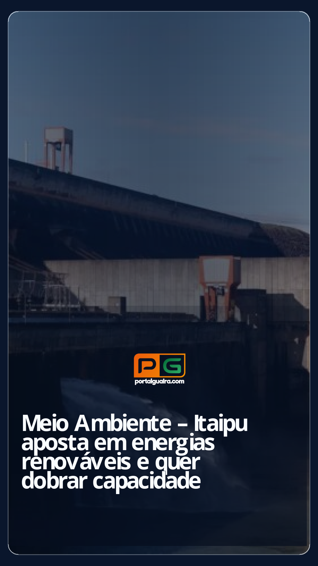 Com 9% da produção de energia elétrica consumida no Brasil, a hidrelétrica Itaipu Binacional aposta em outras formas de energia renovável e quer mais que duplicar a capacidade instalada da usina, atualmente de 14 mil megawatts (MW). A estrutura que opera comercialmente há 40 anos em Foz do Iguaçu, no Paraná, é fruto de um tratado entre Brasil e Paraguai.
