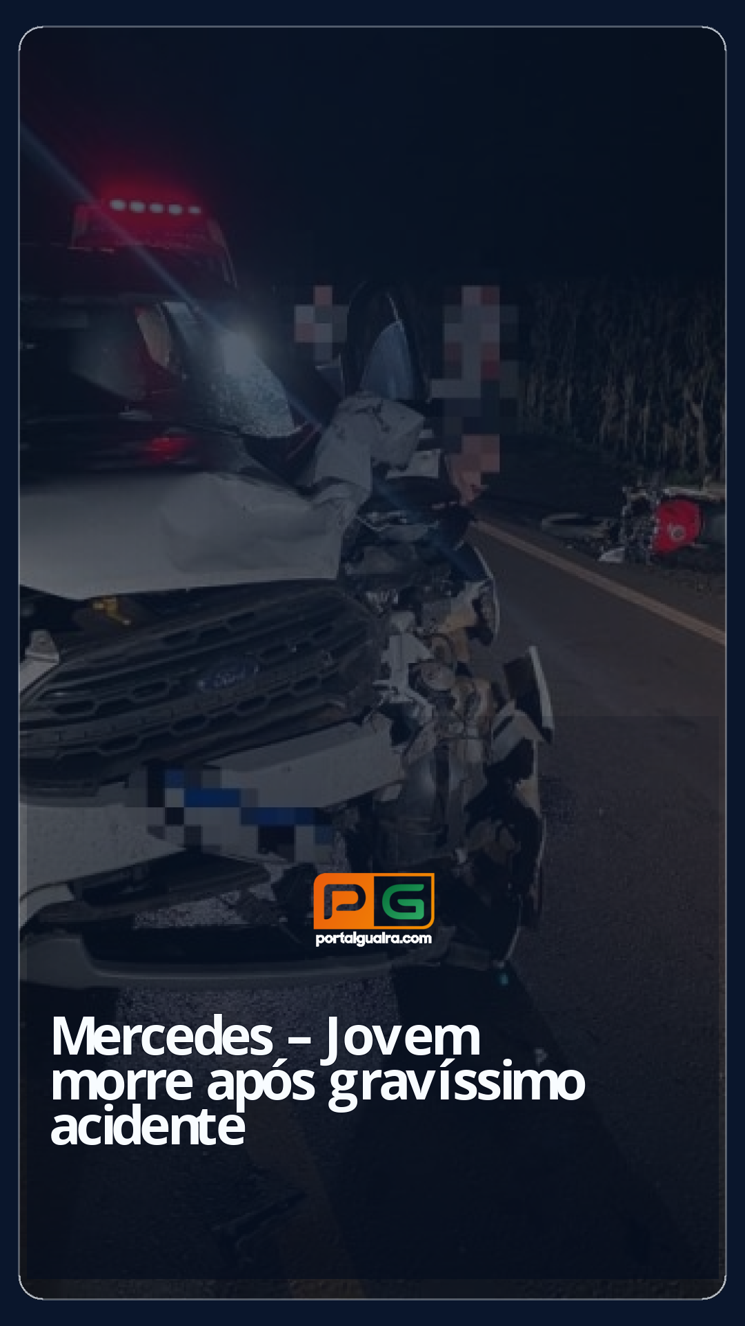 Um gravíssimo acidente foi registrado por volta das 20h35 de segunda-feira (16), entre Mercedes e o distrito de Arroio Guaçu. Uma moça morreu.