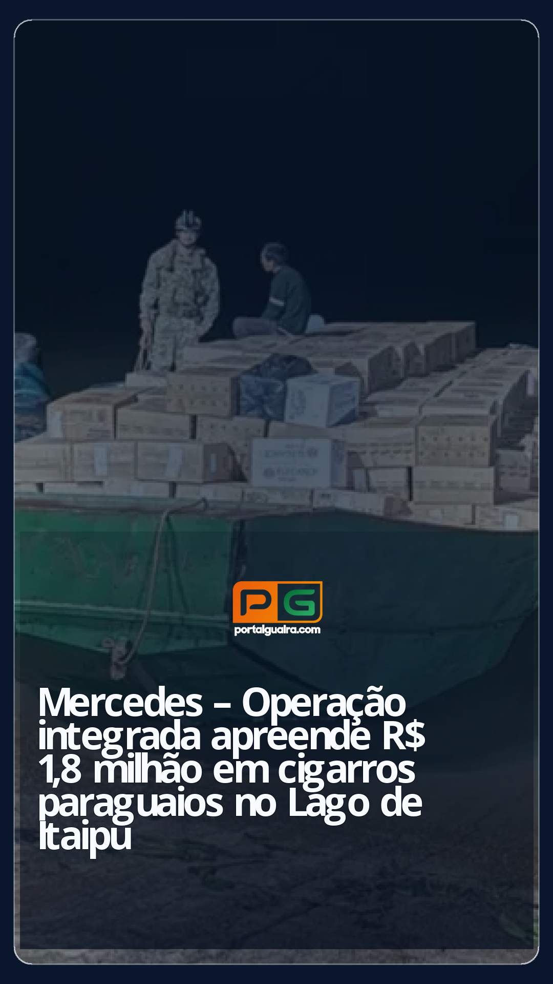 Uma operação conjunta entre a Polícia Federal (NEPOM) e o Batalhão de Polícia de Fronteira (BPFRON) resultou na apreensão de uma carga de cigarros contrabandeados avaliada em R$ 1,8 milhão na madrugada de terça-feira (21). A ação ocorreu no município de Mercedes, no Oeste do Paraná, durante patrulhamento fluvial realizado no âmbito da Operação Protetor.