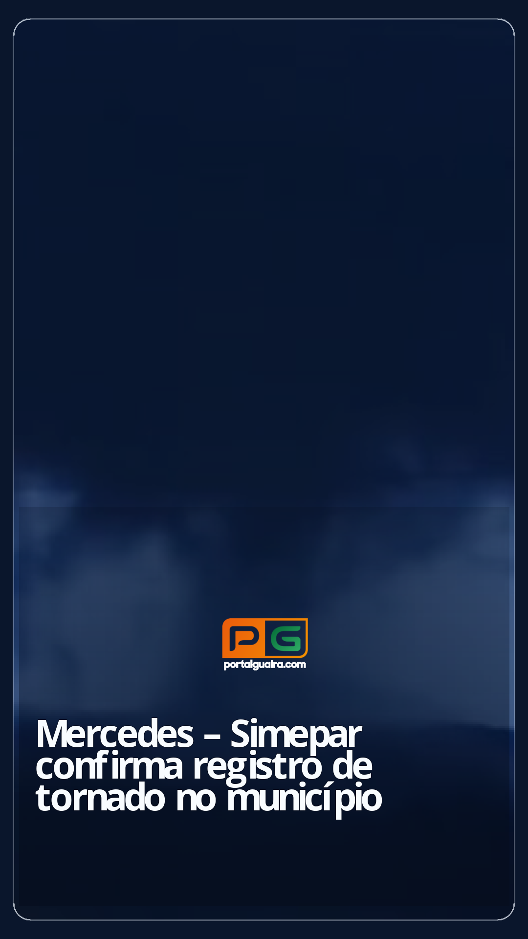 Um tornado com ventos de até 120 km/h foi registrado na noite de quinta-feira (1) em Mercedes. O fenômeno foi classificado como F1, a categoria mais baixa na escala de tornados, segundo o Sistema de Tecnologia e Monitoramento Ambiental do Paraná (Simepar). Não houve registro de ocorrências na Defesa Civil Estadual.