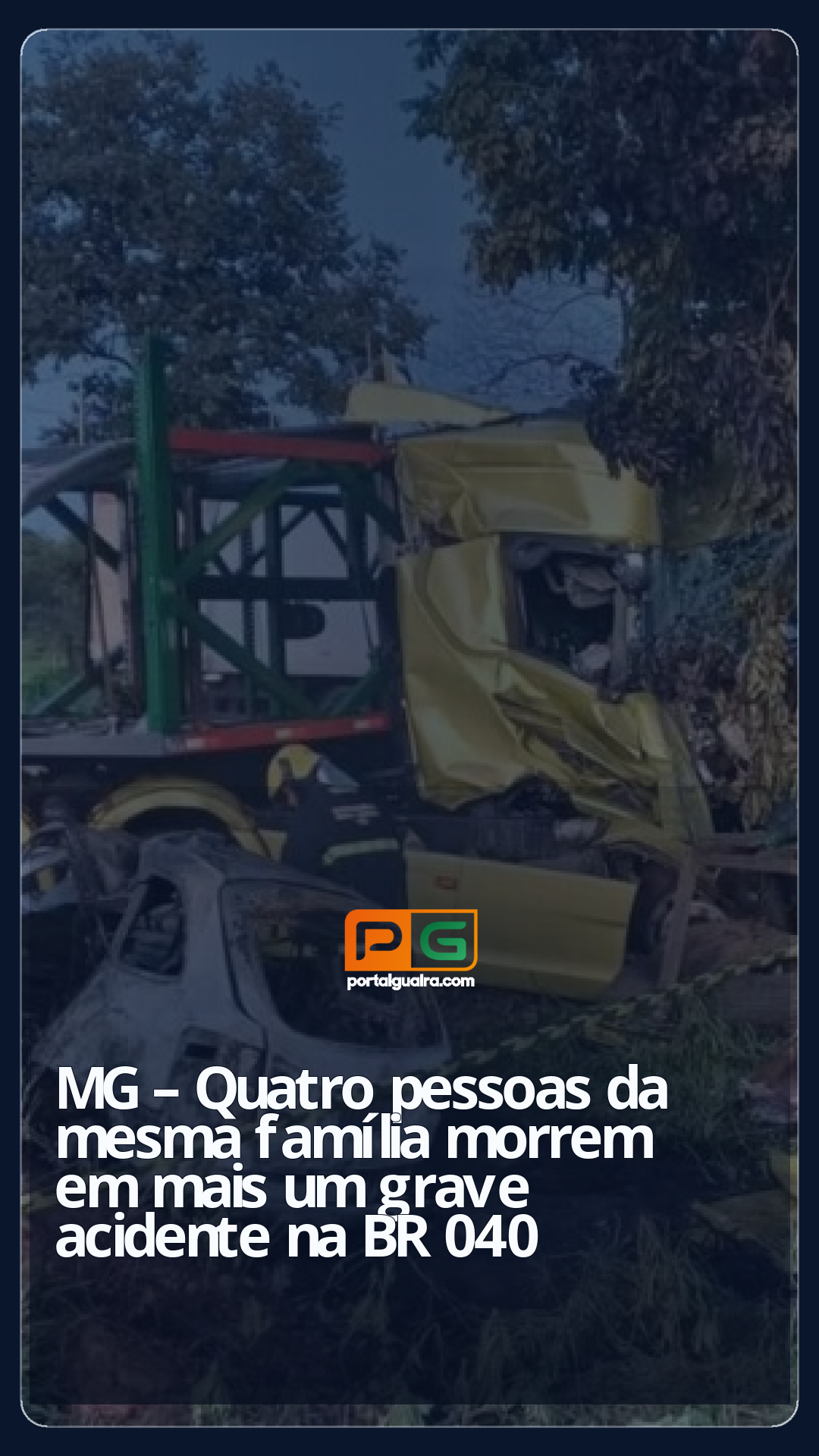 Quatro pessoas da mesma família morreram em um grave acidente entre um carro e uma carreta cegonha na BR-040 próximo a João Pinheiro, no Noroeste de Minas, na madrugada de quarta-feira (31).