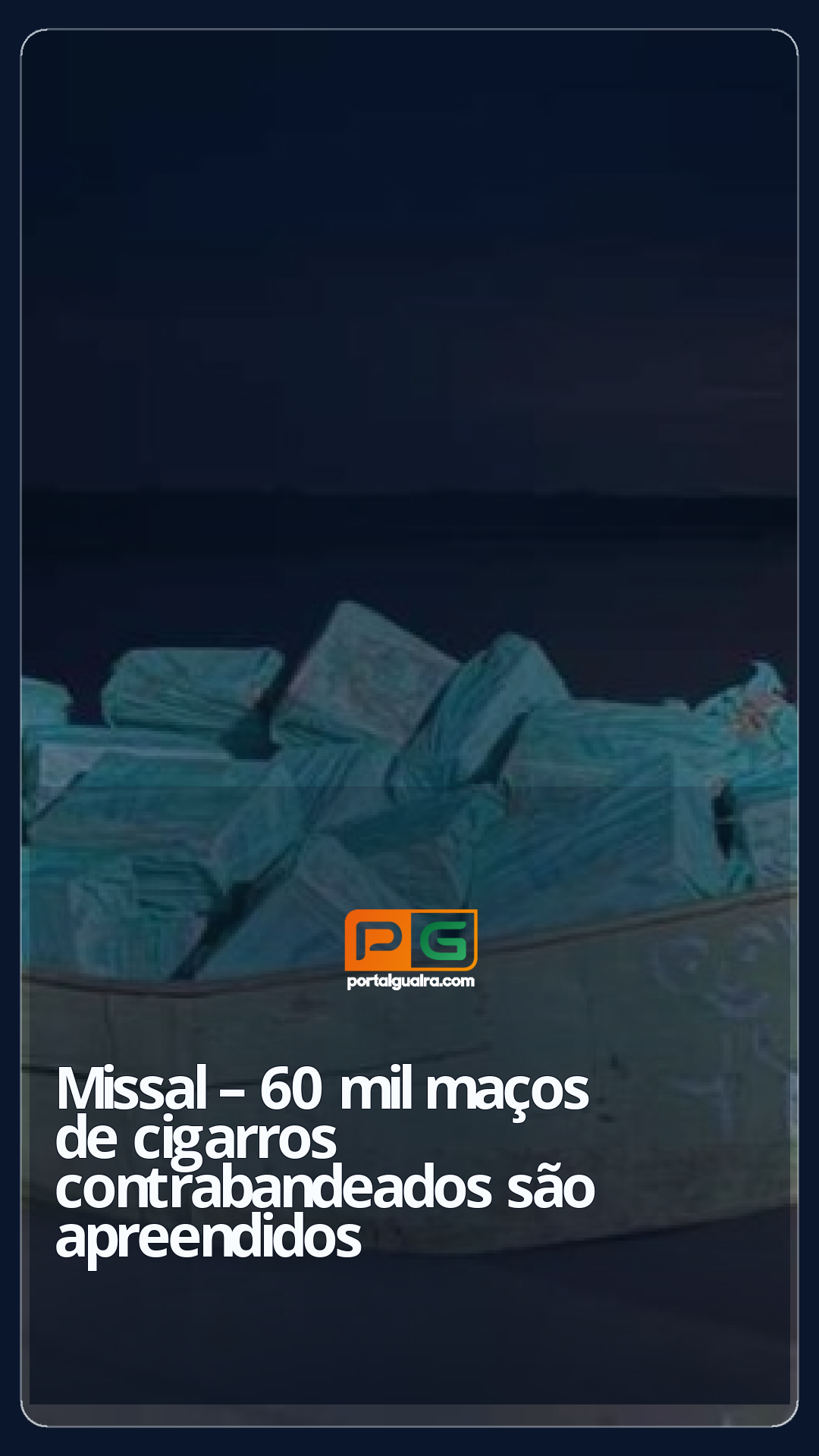 Cerca de 60 mil maços de cigarros contrabandeados do Paraguai foram apreendidos na noite de terça-feira (3) em Missal, no Lago de Itaipu, em uma ação conjunta da Polícia Federal e da Polícia Militar.