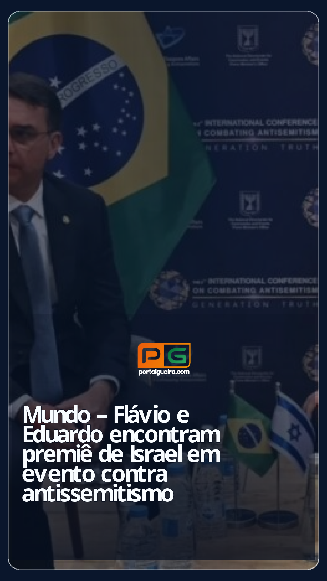 O senador Flávio Bolsonaro (PL-RJ) e seu irmão, ex-deputado Eduardo Bolsonaro (PL), se encontraram com o primeiro-ministro de Israel, Benjamin Netanyahu, na segunda-feira (26), durante uma conferência internacional contra o antissemitismo, realizada no país do Oriente Médio.