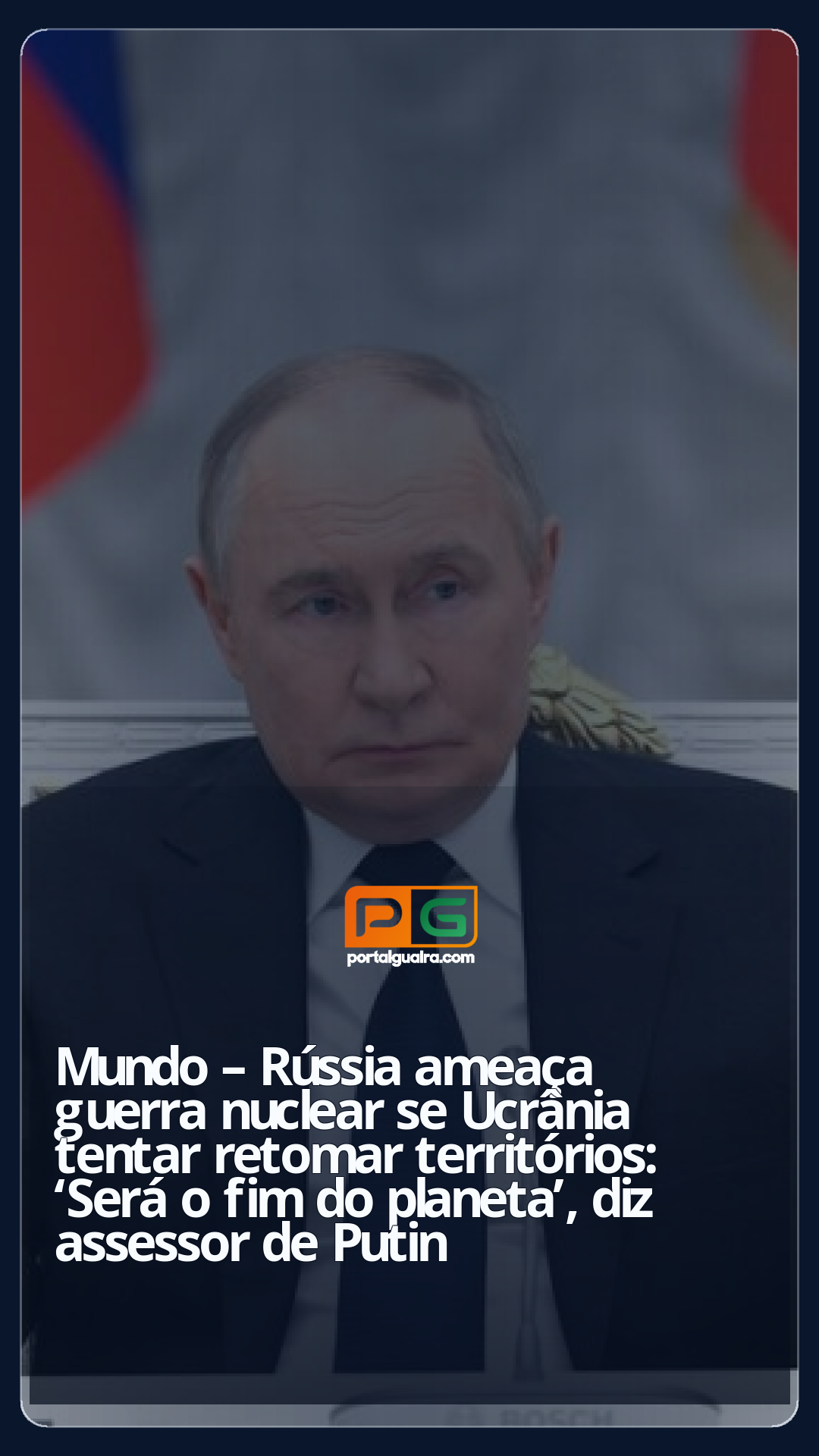 Um assessor do presidente da Rússia, Vladimir Putin, ameaçou uma “guerra nuclear” caso a Ucrânia e a Otan (Aliança Militar do Atlântico Norte) tentem reaver os territórios ucranianos ocupados pelas tropas russas, segundo a agência estatal russa Tass.