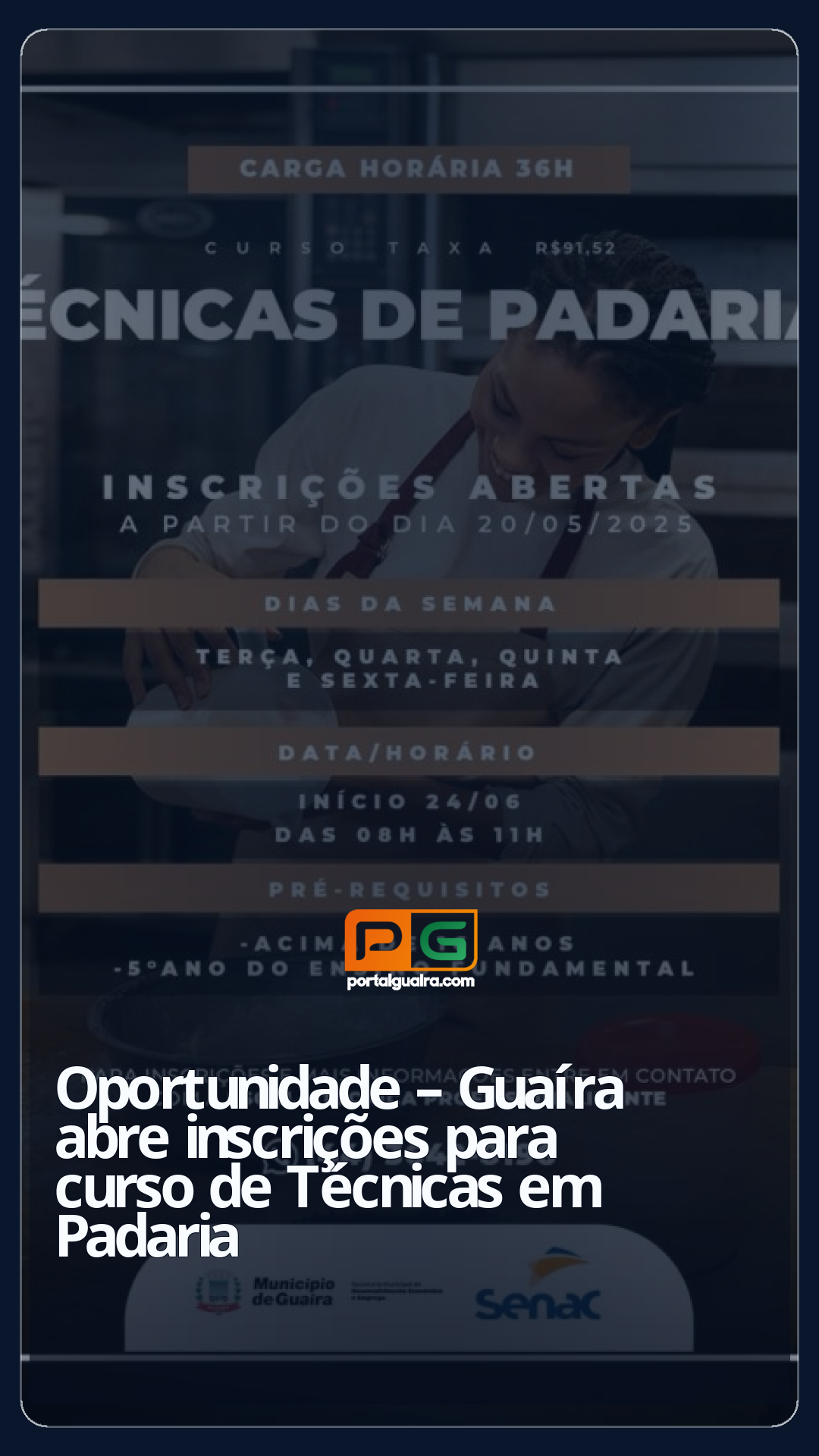 O Município de Guaíra, por meio da Secretaria de Desenvolvimento Econômico e Emprego (SEDE), em parceria com o Serviço Nacional de Aprendizagem Comercial (SENAC), anunciou a abertura do curso de Técnicas em Padaria.