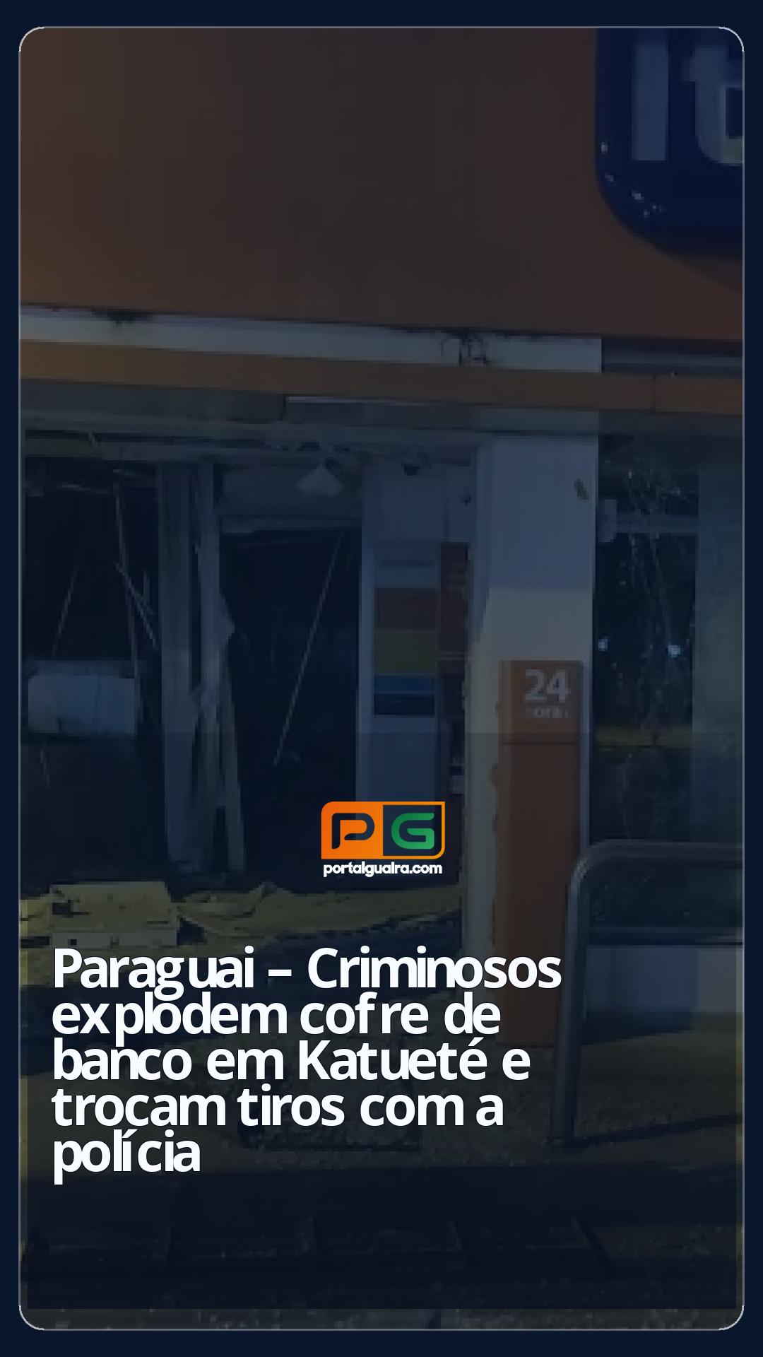Uma quadrilha fortemente armada atacou uma agência do Banco Itaú na cidade de Katueté, no Paraguai, durante a madrugada desta quinta-feira (30). O grupo, formado por cerca de 15 a 20 criminosos, utilizou explosivos para detonar o cofre e os caixas eletrônicos do banco e, em seguida, enfrentou a polícia em um intenso tiroteio. As informações são do ABC Color.