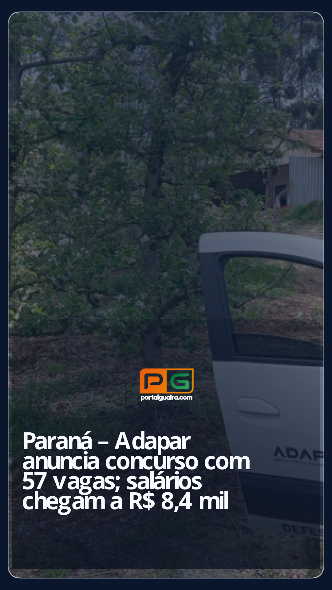 A Agência de Defesa Agropecuária do Paraná (Adapar) anunciou nesta terça-feira (23) a abertura de um concurso público com 57 vagas. São 55 destinadas para atuação como fiscal de defesa agropecuária, com a função de engenheiro agrônomo e salário de R$ 8.463,20, e duas vagas para atuação como assistente de fiscalização da defesa agropecuária, com a função de técnico de laboratório e remuneração de R$ 4.919,24. O período de inscrições é de 29 de setembro até 29 de outubro.