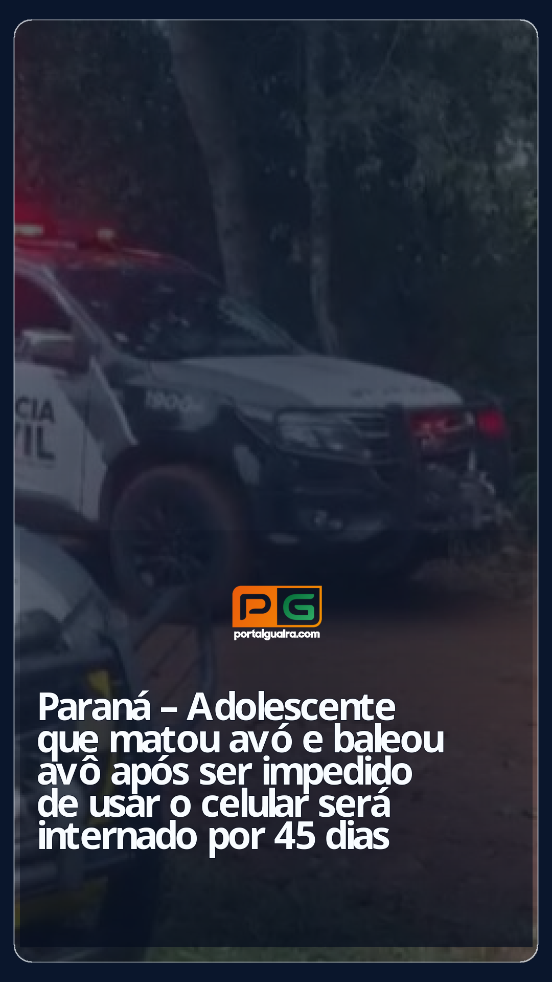 O adolescente de 13 anos que matou a avó e feriu o avô a tiros, em Francisco Beltrão, no sudoeste do Paraná, teve a internação provisória decretada por um período de 45 dias. A medida foi confirmada pela Polícia Civil (PC-PR) na segunda (30).