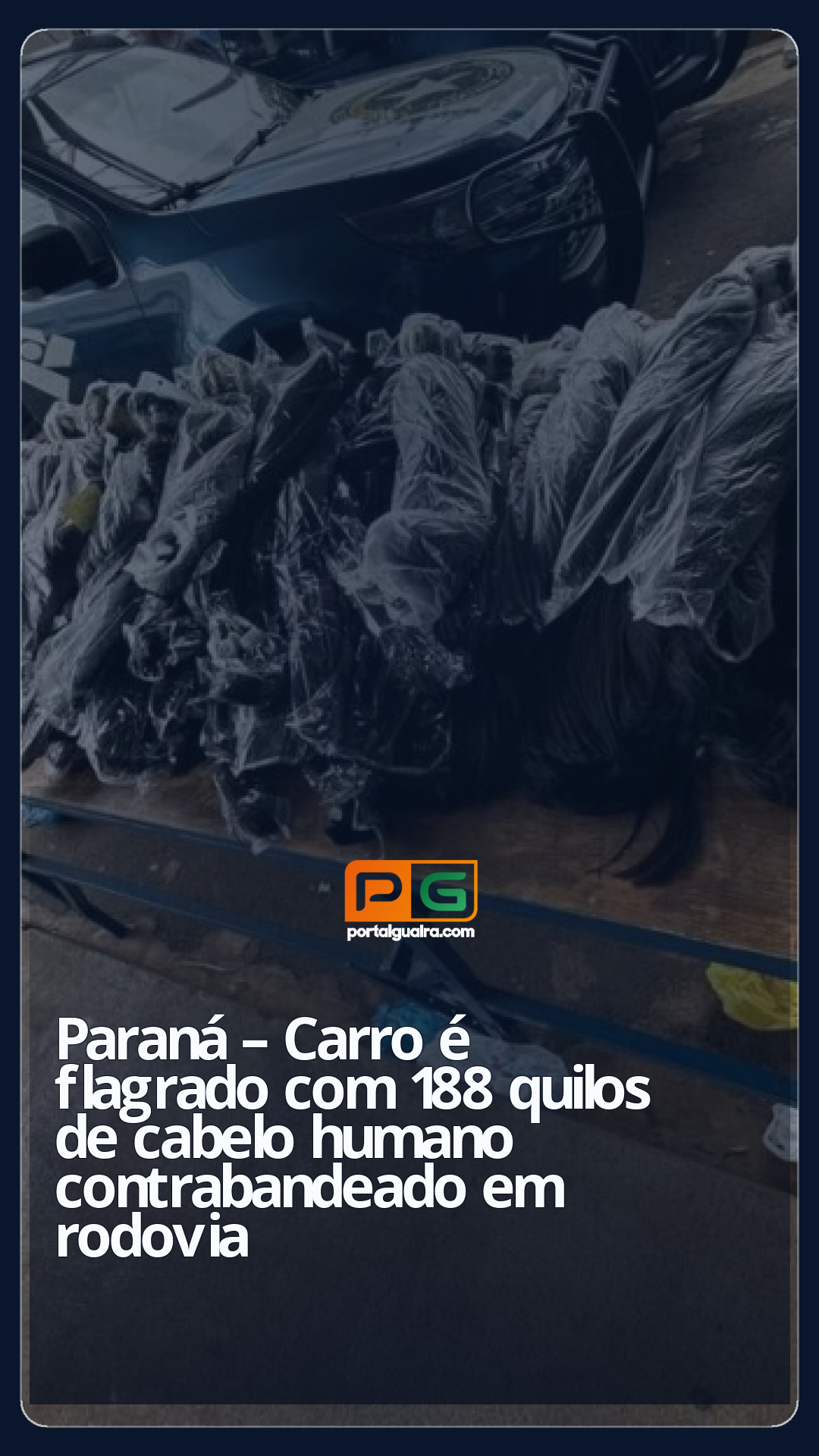 Um carro foi flagrado transitando com cerca de 188 quilos de cabelo humano contrabandeado em uma rodovia na região de Ibiporã, no norte do Paraná, segundo a Receita Federal.