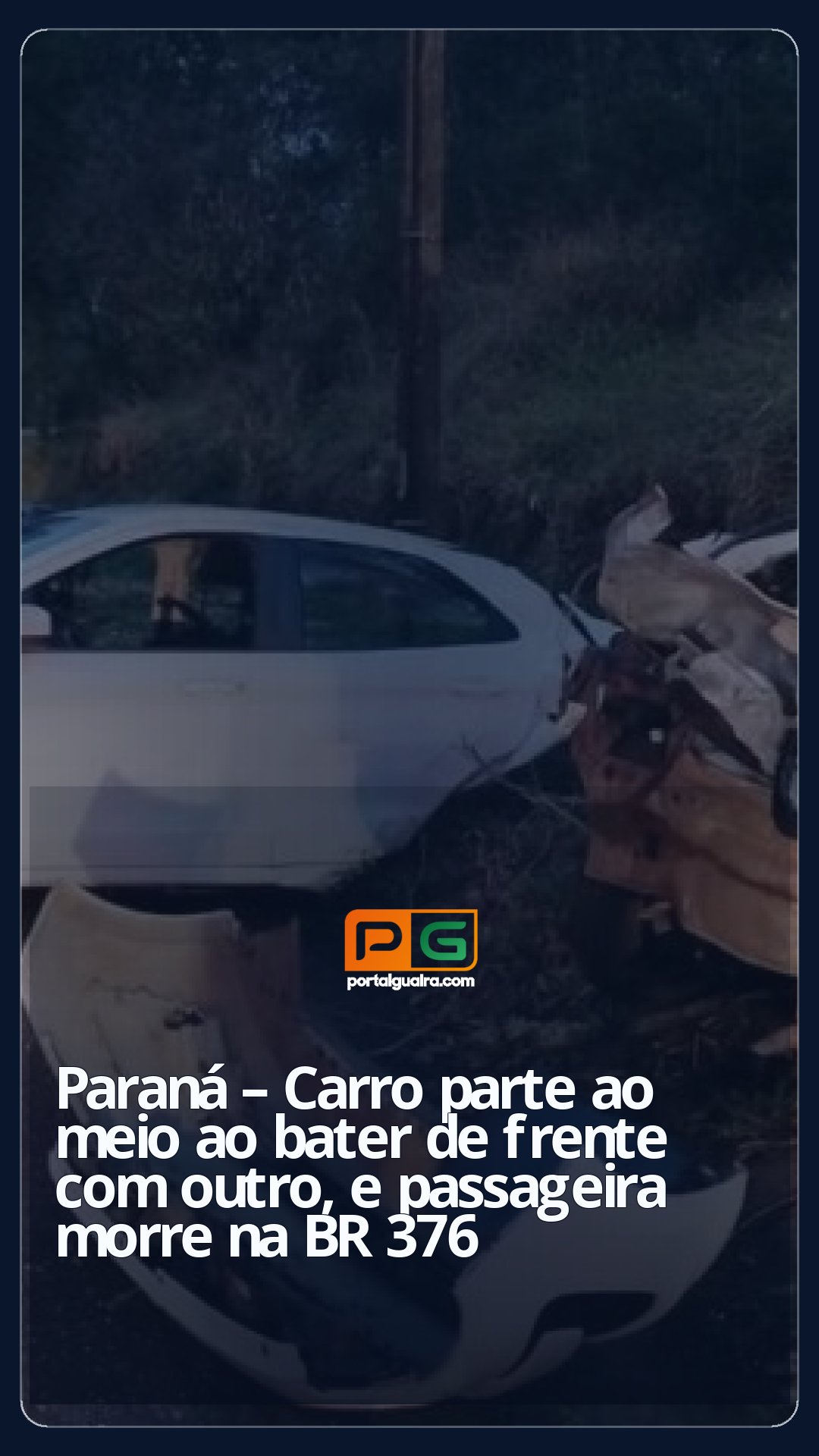 Um carro partiu ao meio ao bater de frente com outro no final de tarde de domingo (21) na BR-376 em Ortigueira, nos Campos Gerais do Paraná.