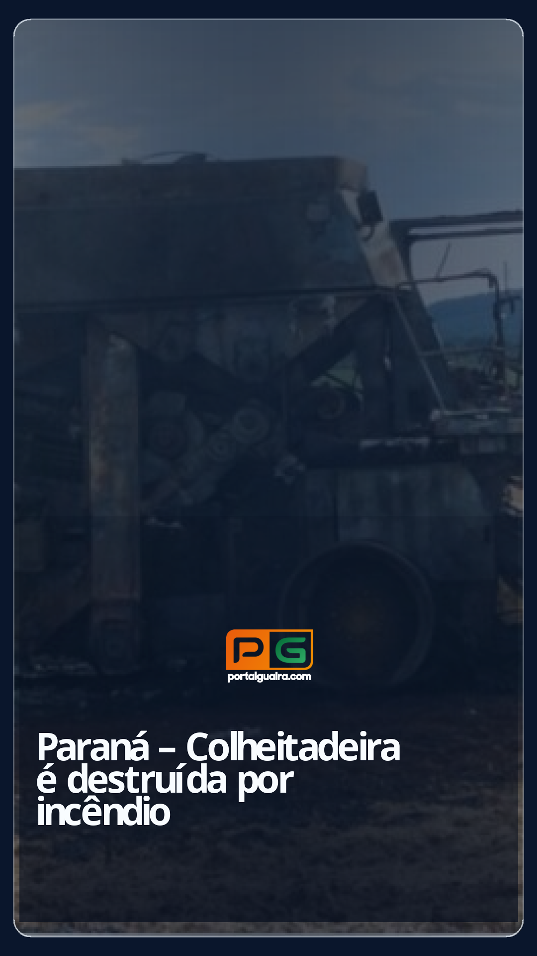 Uma colheitadeira foi destruída por incêndio em São Mateus do Sul, no Sudeste do Paraná, na tarde de sexta-feira (28).
