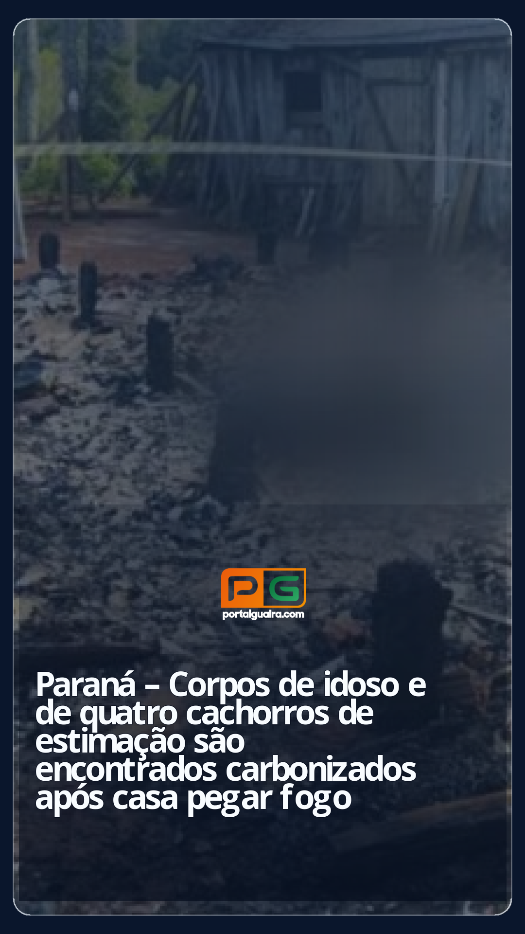 Os corpos de um idoso de 83 anos e de quatro cachorros de estimação dele foram encontrados carbonizados após a casa da vítima pegar fogo durante a madrugada de quinta-feira (15) na área rural de Turvo, na região central do Paraná.