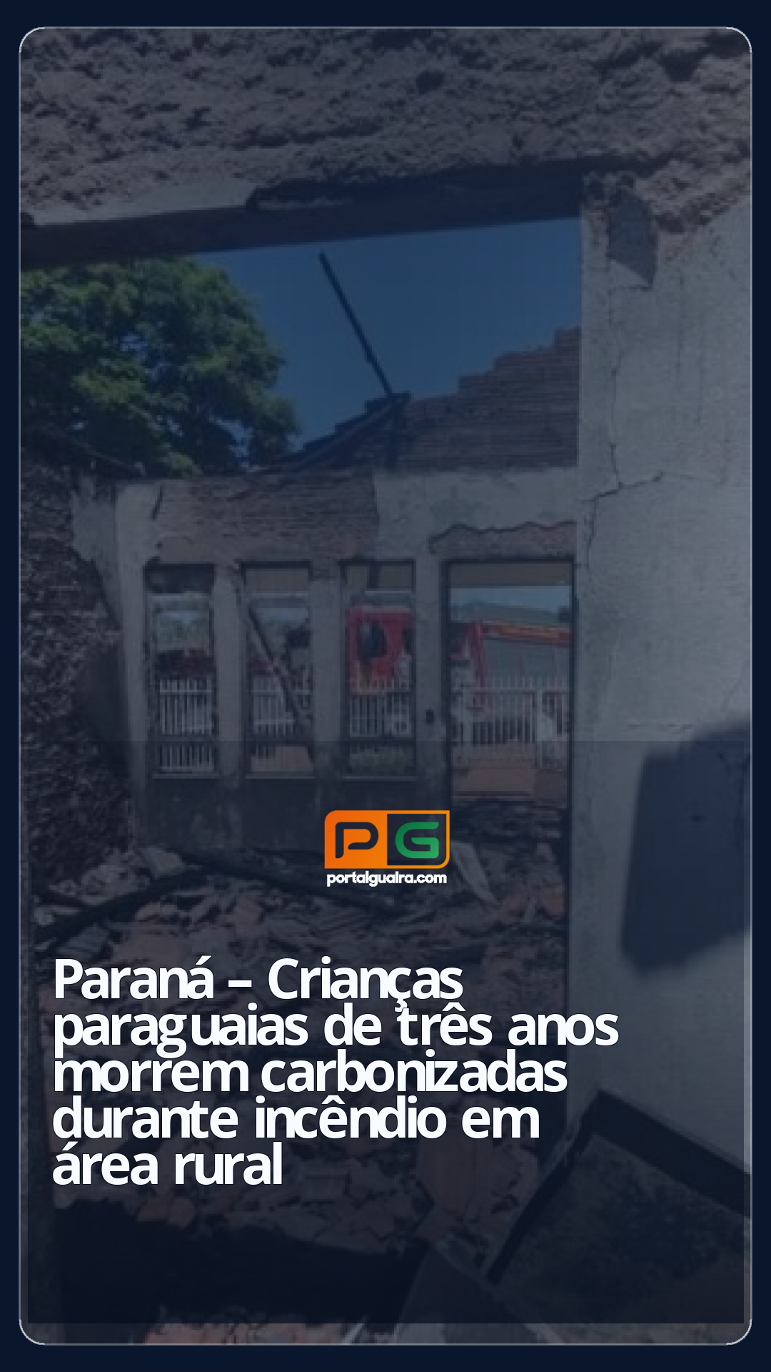 Dois meninos paraguaios de três anos morreram carbonizados em um incêndio na sexta-feira (7) em uma casa na área rural de Tapira, no noroeste do Paraná.