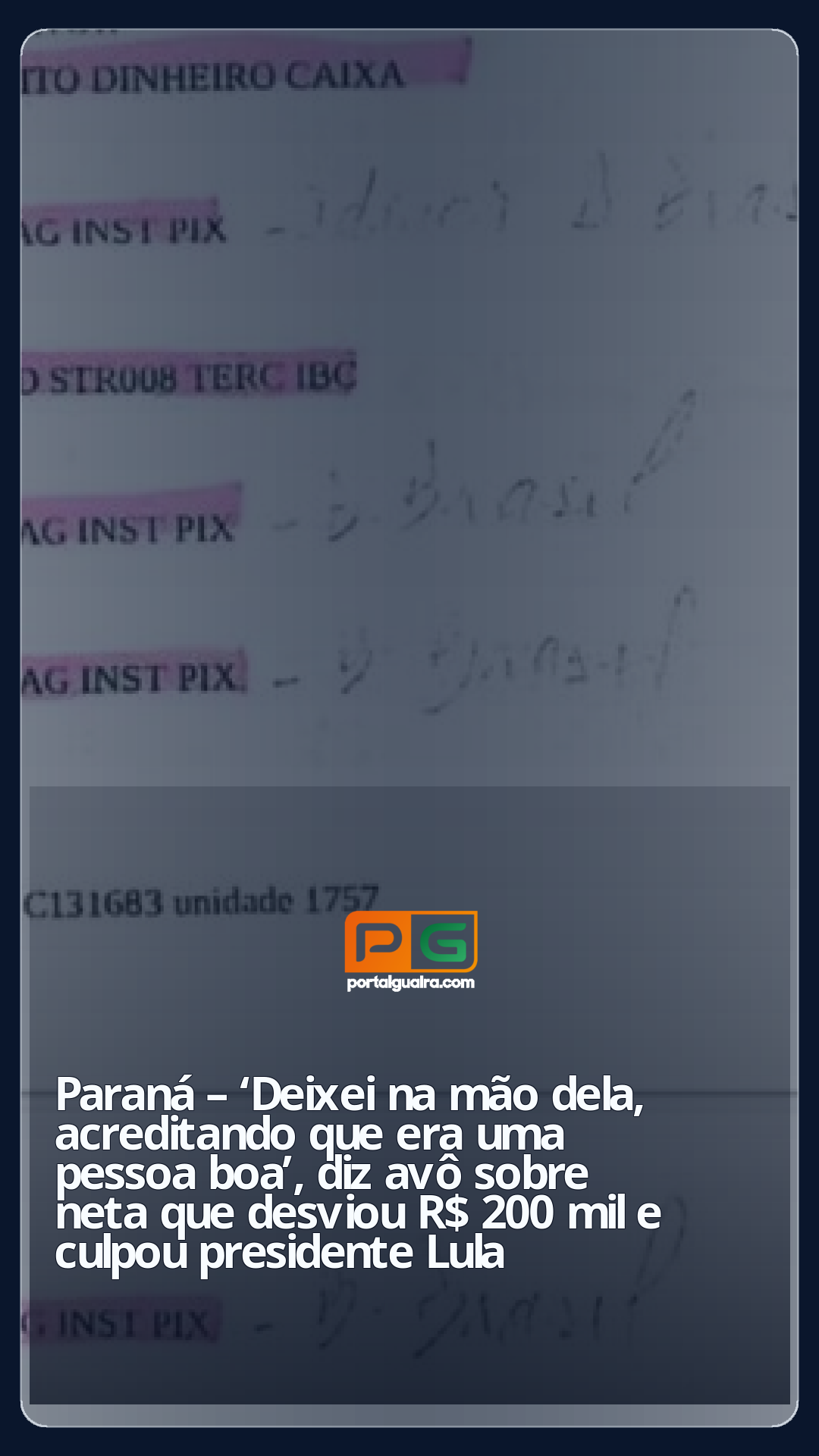 No golpe, ela transferia parte do valor para a própria conta, deixando o idoso acreditar que o dinheiro estava sendo guardado. As investigações apontam que, no total, ela desviou cerca de R$ 72 mil da aposentadoria do avô.