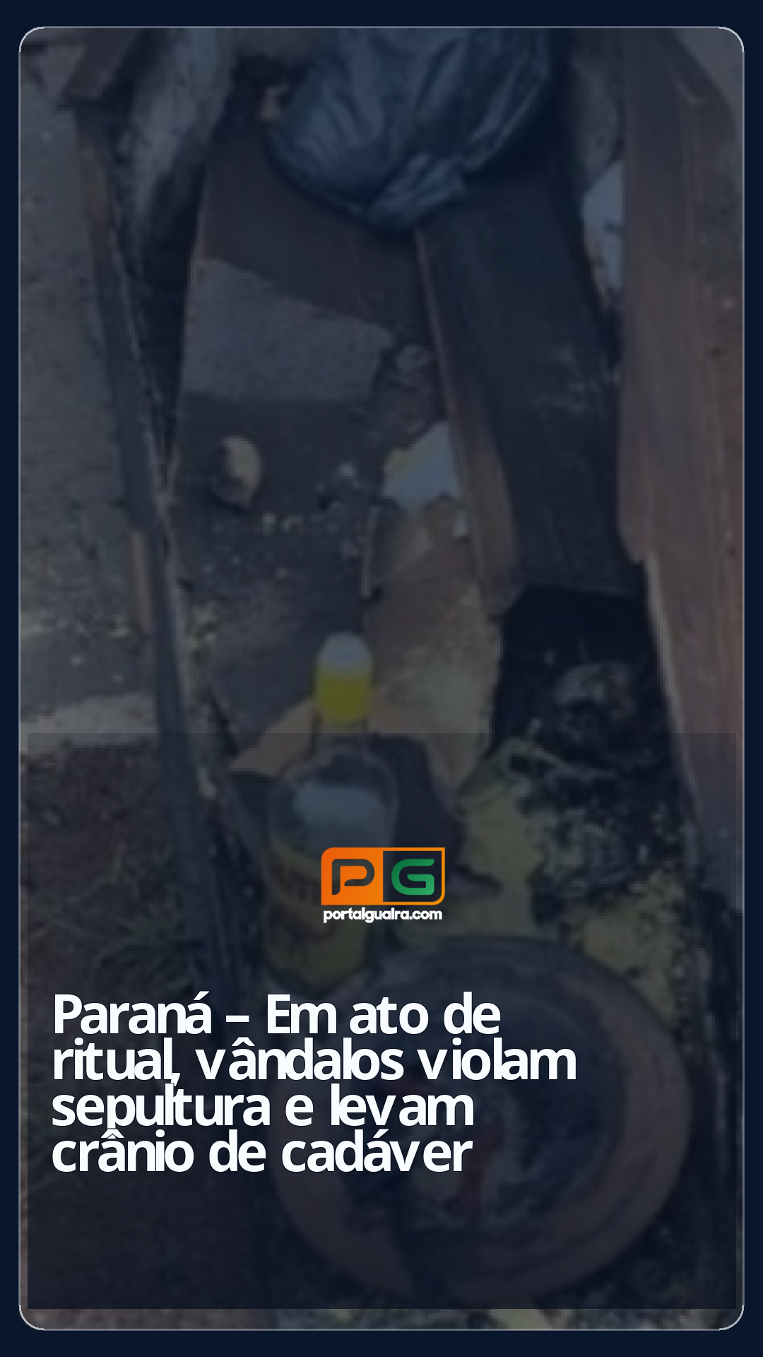Uma ocorrência de ritual ou ato de vandalismo foi registrada na quarta-feira (8) no cemitério municipal Portal do Céu em Pato Branco, onde familiares de uma senhora que morreu de covid em 2021, teve o túmulo violado, retirado o caixão e levado o crânio. No local foram encontrados elementos de rituais como um prato, pimenta, lâminas de gilete, bebidas entre outros, além de ter sido queimados os restos mortais.