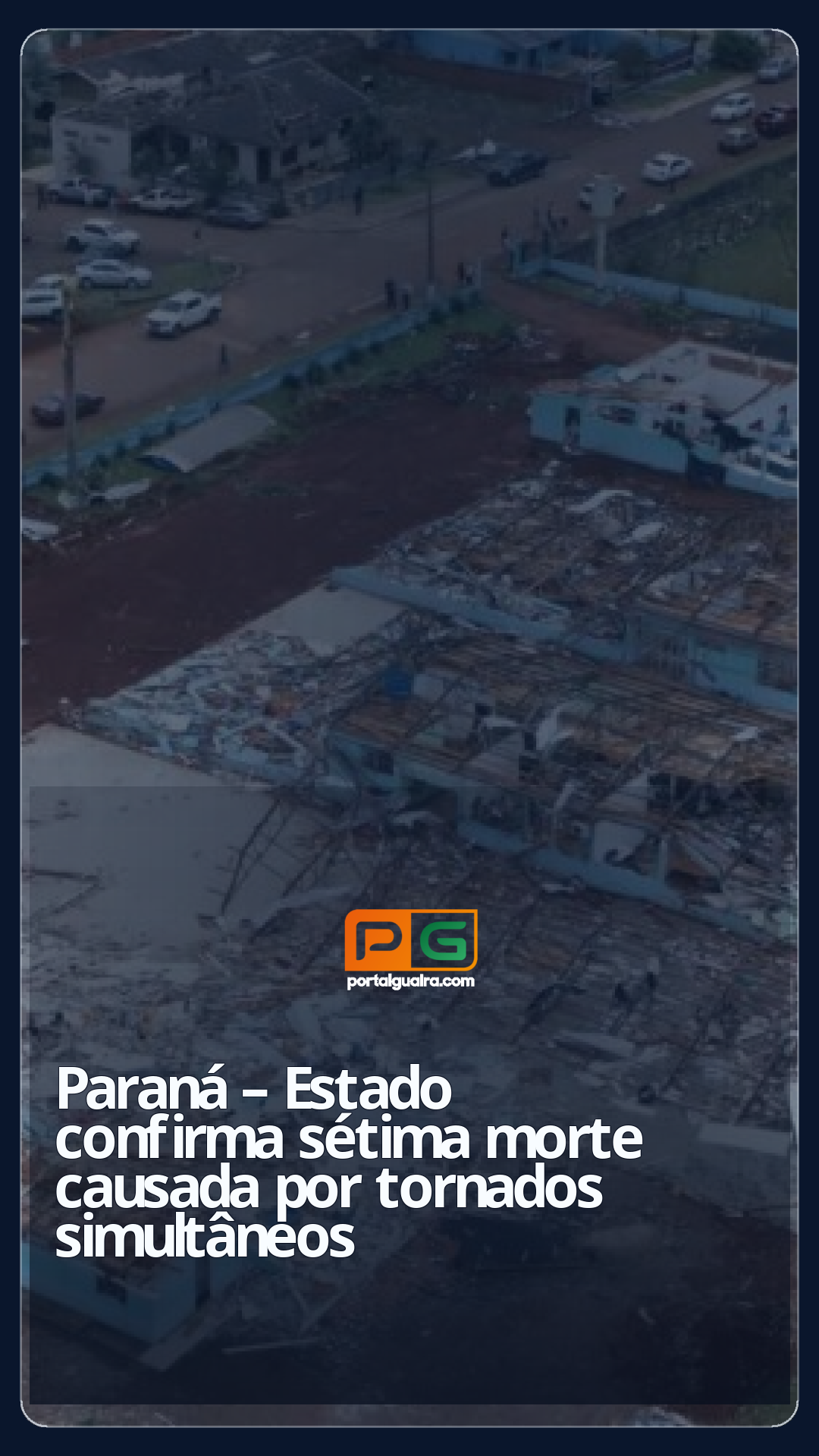 A Secretaria de Saúde do Paraná confirmou, na terça-feira (11), a sétima morte associada à passagem de três tornados pelo estado, na sexta-feira (8). Segundo a pasta, a vítima José Eronildes de Almeida, de 70 anos de idade, morreu no sábado (9), na Unidade de Saúde Central de Rio Bonito do Iguaçu, por insuficiência cardíaca aguda.