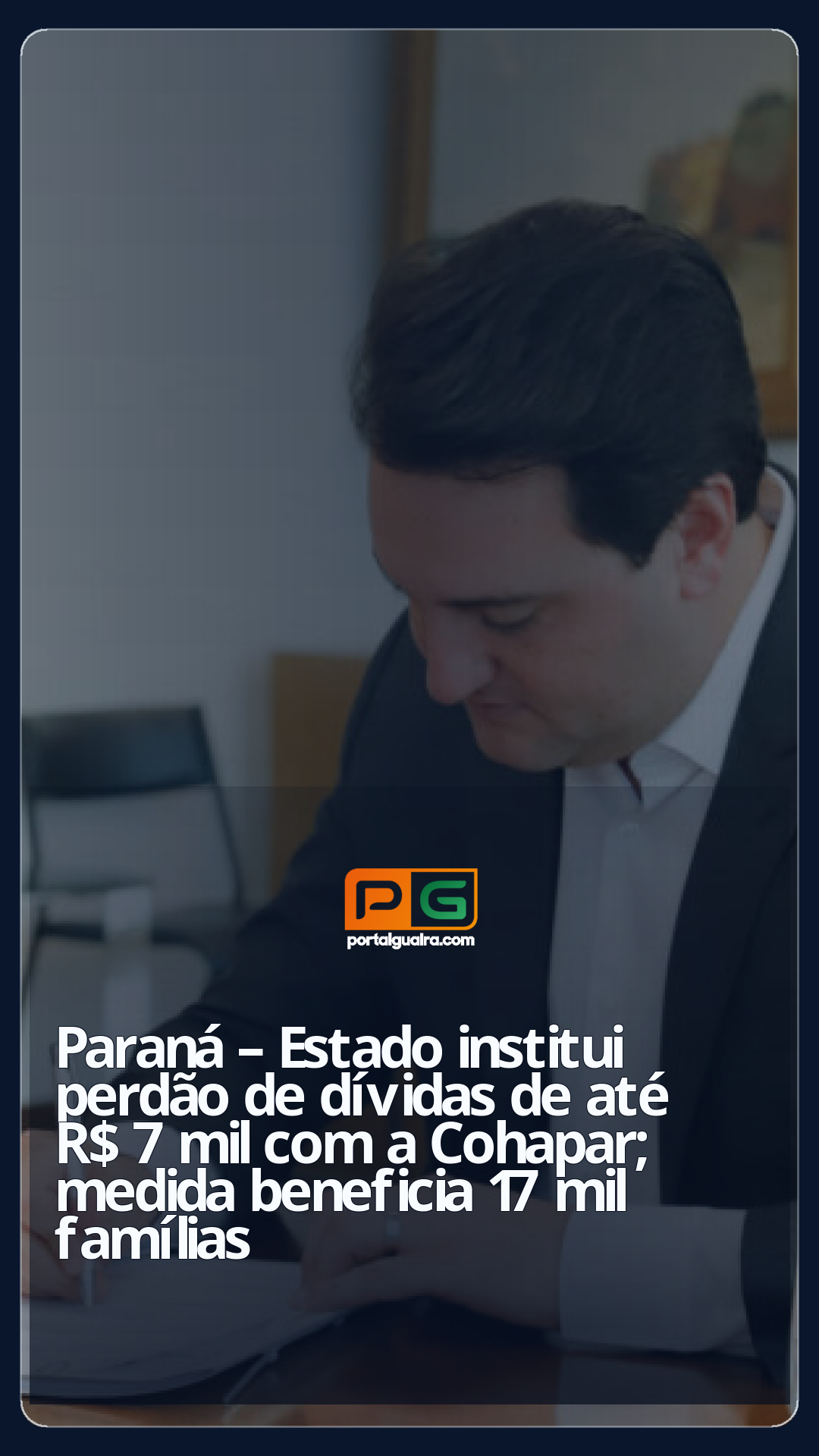 O governador Carlos Massa Ratinho Junior sancionou na quinta-feira (2) a Lei nº 22.659/2025 , que institui o perdão de dívidas de mutuários da Companhia de Habitação do Paraná (Cohapar). A medida beneficia até 17 mil famílias em todo o Estado e garante a quitação de débitos habitacionais de até R$ 7 mil, com isenção de multas e juros moratórios, além do quitação de débitos para outros casos específicos.