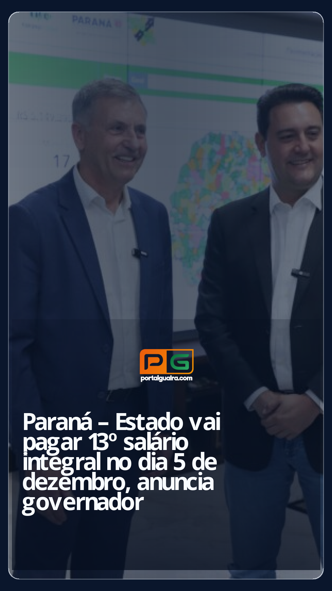 O Governo do Paraná vai pagar o 13º salário integral aos servidores públicos ativos, aposentados e pensionistas no próximo dia 5 de dezembro. O anúncio foi feito nesta quarta-feira (26) pelo governador Carlos Massa Ratinho Junior e pelo secretário da Administração e da Previdência, Luizão Goulart. Assim como nos anos anteriores, o pagamento em parcela única garante que os trabalhadores possam se programar para as despesas e compromissos de fim de ano.