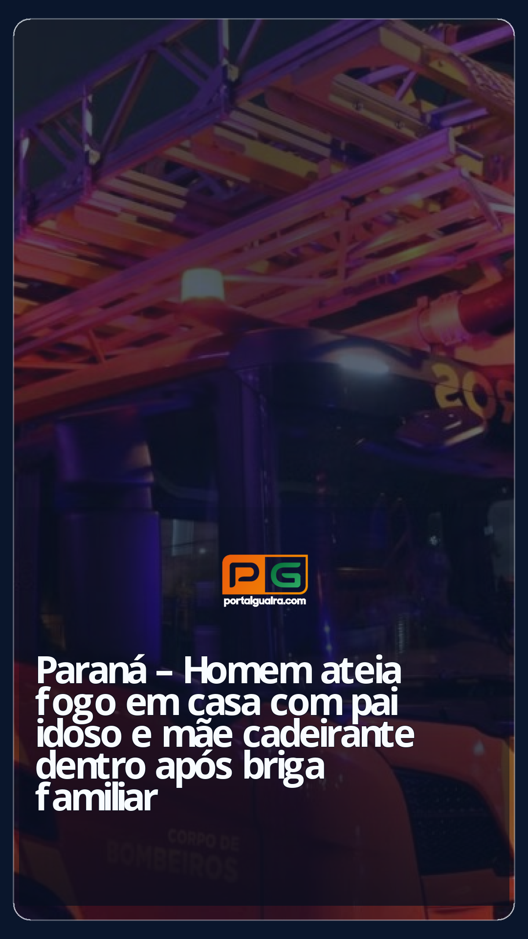 Um homem de 39 anos foi preso em flagrante na madrugada de quinta-feira (18) em Ponta Grossa, nos Campos Gerais do Paraná, após atear fogo na casa dos próprios pais com eles dentro, segundo a Polícia Militar (PM). Ninguém se feriu.