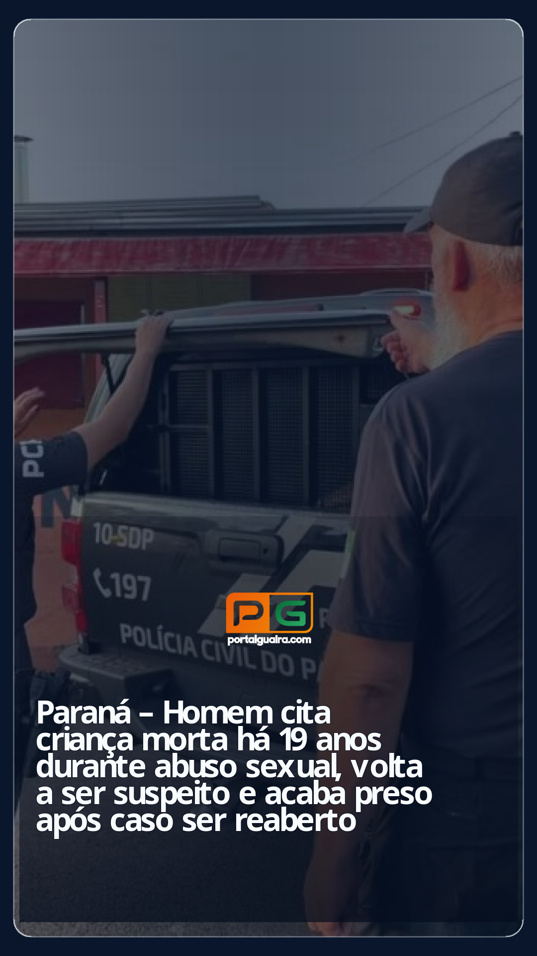 Martonio Alves Batista, de 55 anos, foi preso preventivamente em Londrina, no norte do Paraná, na manhã de quinta-feira (19). Segundo a Polícia Civil (PC-PR), ele é o principal suspeito de estuprar e matar Giovanna dos Reis Costa, em abril de 2006, em Quatro Barras, na Região Metropolitana de Curitiba.