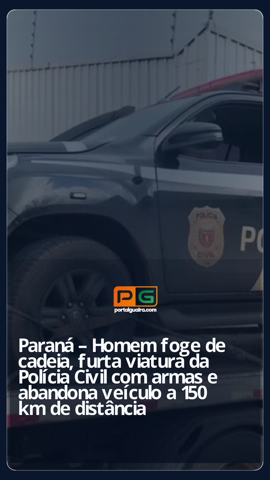 Um homem fugiu da cadeia pública de Engenheiro Beltrão, no norte do Paraná, na noite de domingo (8). Em seguida, ele conseguiu acessar a área administrativa da Polícia Civil (PC-PR) e furtou uma viatura, na qual estavam várias armas e munições.