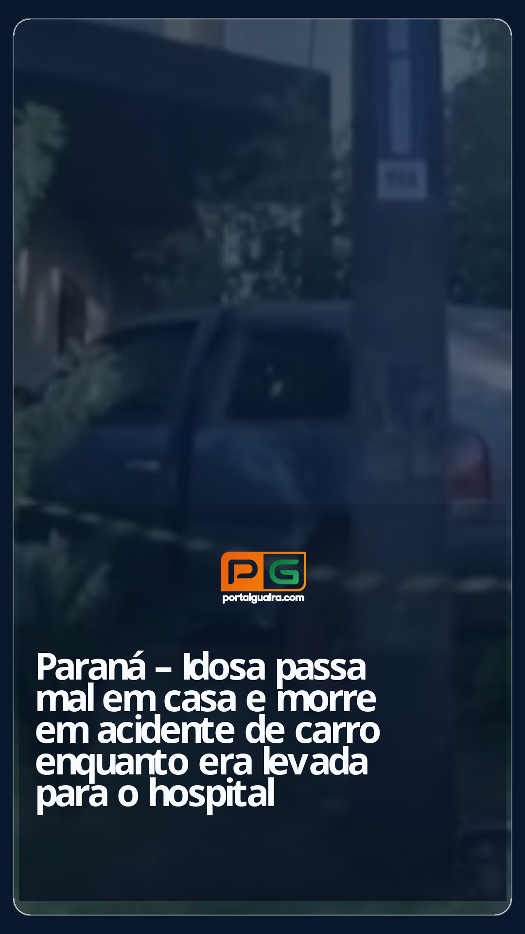 Uma idosa de 74 anos morreu em um acidente de carro, na tarde de segunda-feira (13), enquanto era levada pelo marido a um hospital em Roncador, no Centro-Oeste do Paraná. O homem perdeu o controle do veículo e bateu em muro.