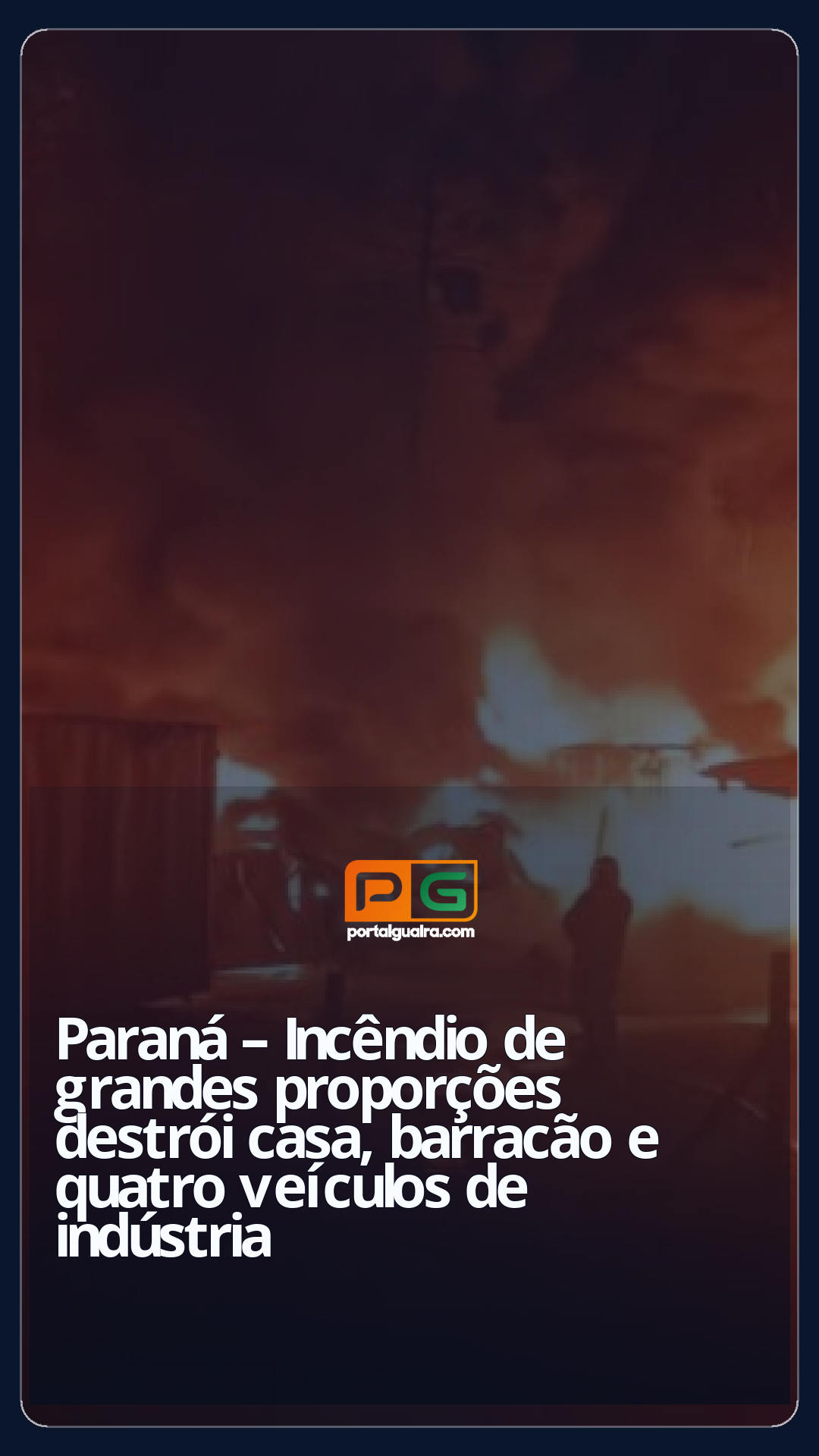 Um incêndio de grandes proporções destruiu uma casa, um barracão e quatro veículos de uma indústria de Campo Largo, na região metropolitana de Curitiba.
