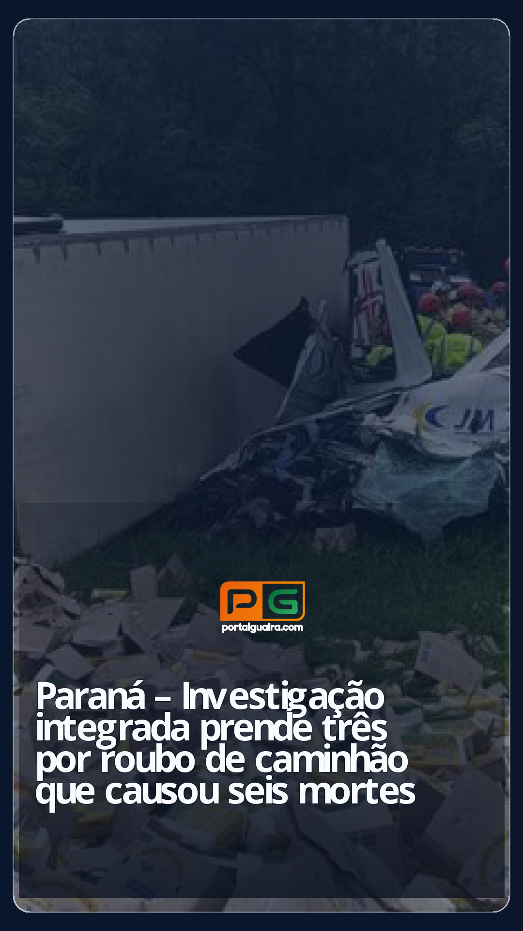 A Polícia Civil do Paraná (PCPR), em investigação conjunta com a Polícia Militar do Paraná (PMPR), Polícia Rodoviária Federal (PRF) e Guarda Civil Municipal de Campina Grande do Sul, elucidou o roubo de um caminhão, ocorrido na rodovia BR-116, em Campina Grande do Sul, na Região Metropolitana de Curitiba, que resultou na morte de seis ocupantes de uma van. Três homens foram presos na terça-feira (6), em menos de 48 horas após o crime.
