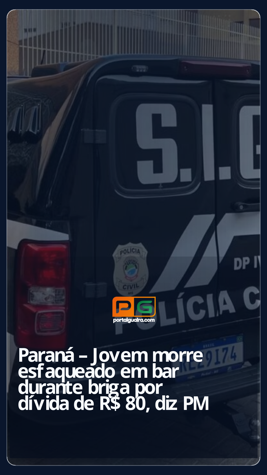 Um jovem de 27 anos foi morto esfaqueado em um bar de Marquinho, cidade da região central do Paraná, durante uma briga motivada por dívida de R$ 80 que ele tinha com o autor do crime, segundo a Polícia Militar (PM).