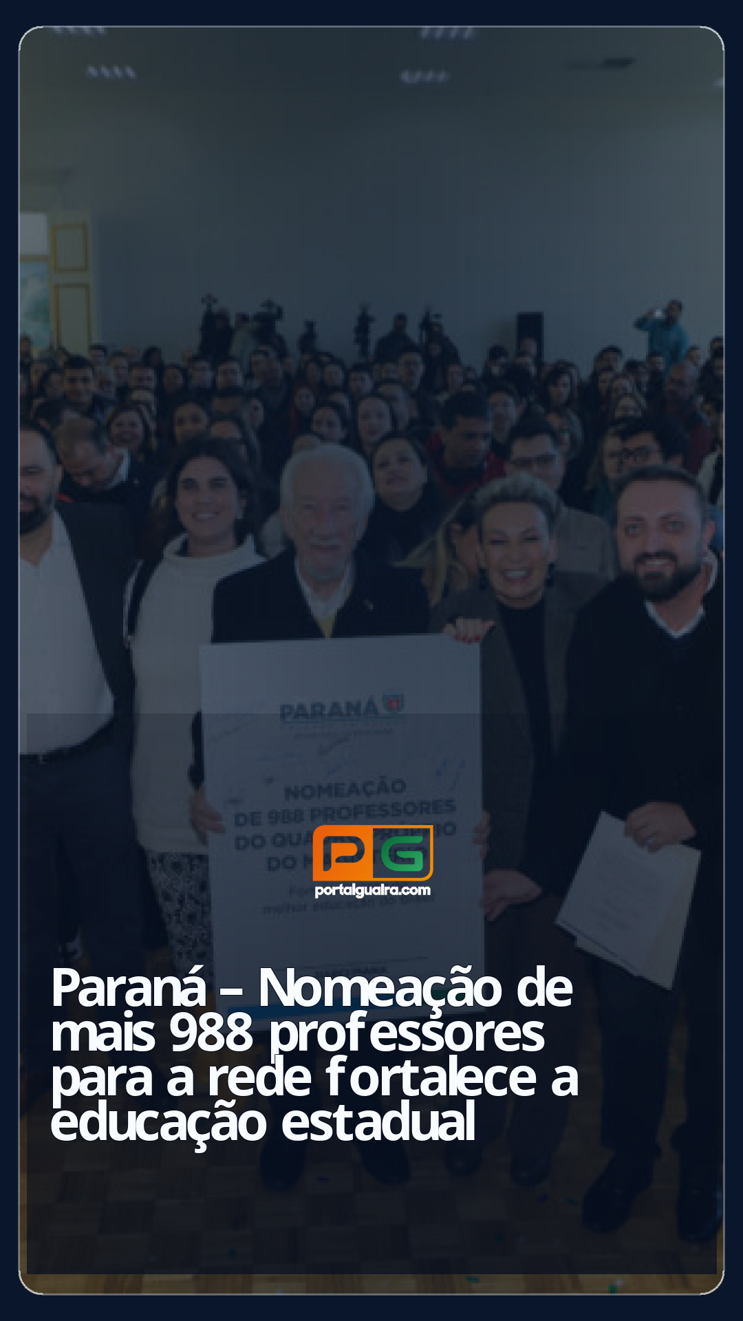 O governador em exercício Darci Piana e o secretário estadual da Educação, Roni Miranda, assinaram na segunda-feira (7) a nomeação de mais 988 professores para atuar na rede estadual de ensino. Eles foram aprovados no concurso público realizado em 2023 e vão atender escolas dos 32 Núcleos Regionais de Educação do Paraná, dando aula em diferentes disciplinas a partir do segundo semestre letivo.
