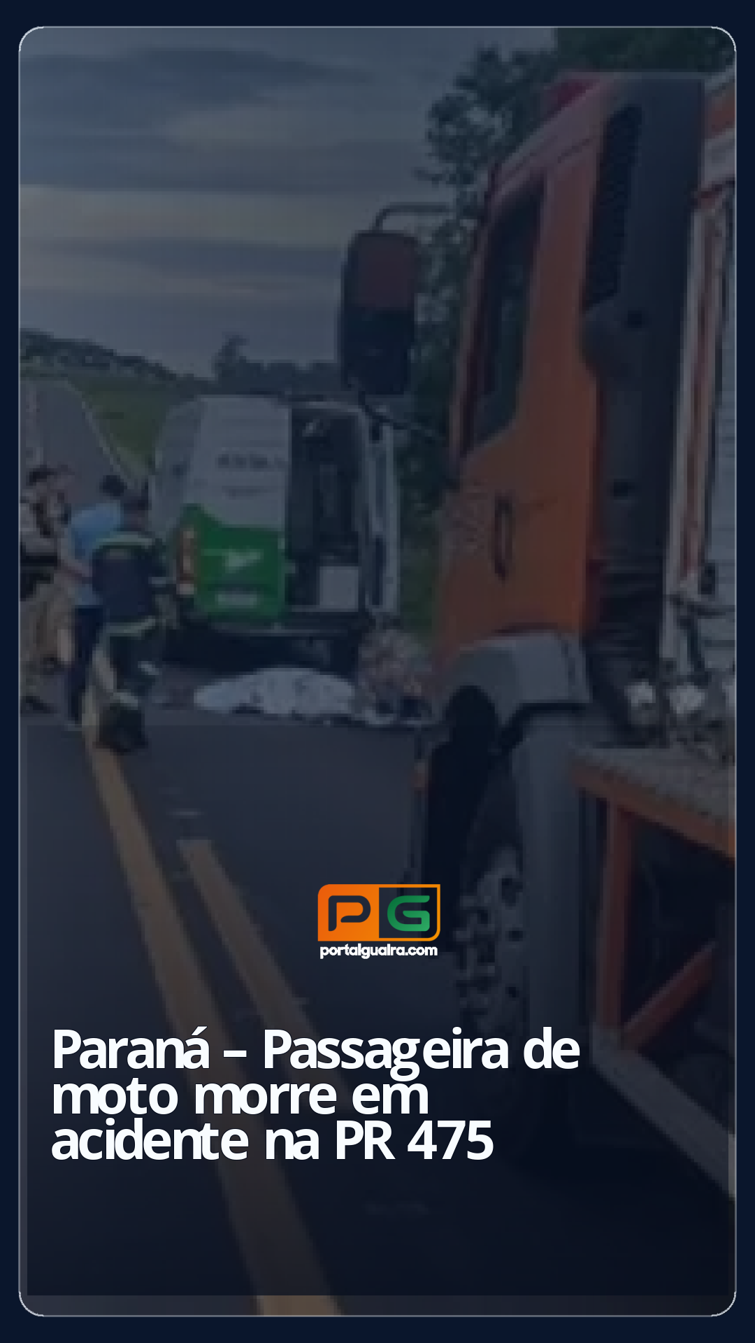 Uma motociclista de 24 anos e sua passageira se envolveram em um grave acidente na madrugada de domingo (23), na PR-475, em São Jorge d’Oeste. A passageira, cuja identidade não foi divulgada, morreu ainda no local.