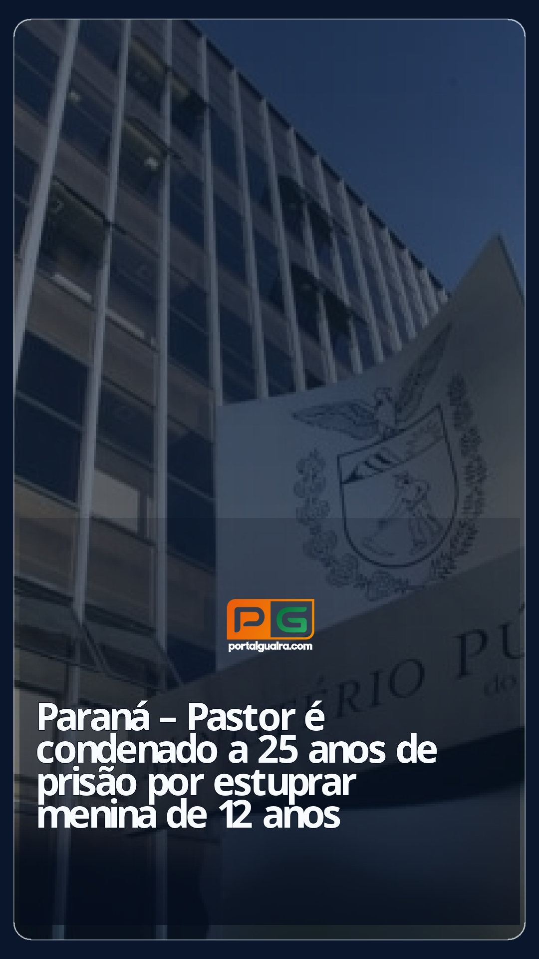 Um pastor foi condenado a 25 anos de prisão em regime fechado por ter estuprado uma menina de 12 anos entre 2018 e 2019. Na época, do crime, o homem tinha 46 anos e era responsável pela igreja que a criança frequentava.